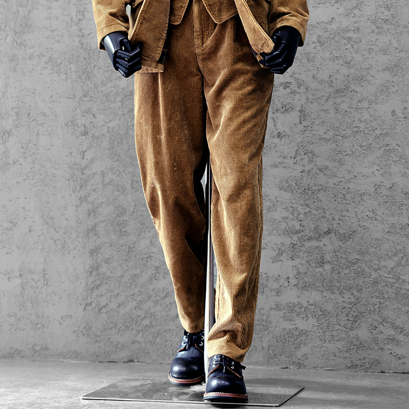 单褶休闲条绒裤 经典 非rrl 男美式 西里布芸黄色灯芯绒复古直筒长裤