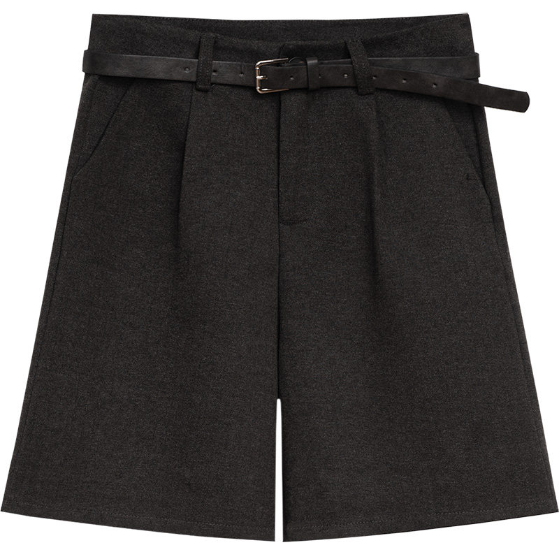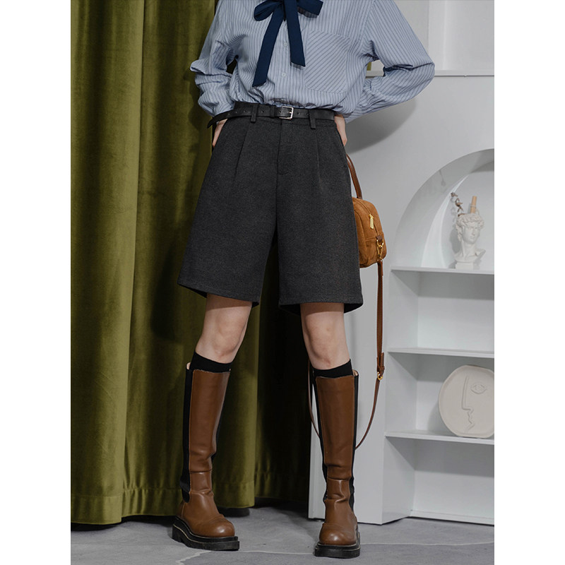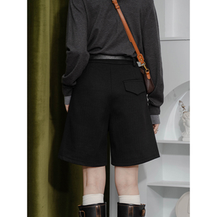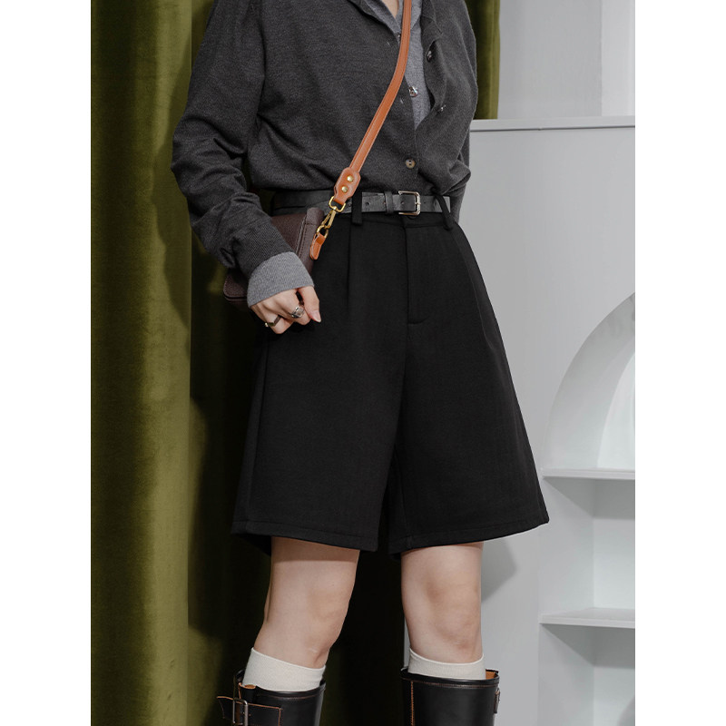 毛呢阔腿短裤 外穿直筒五分裤 西装 简约百搭休闲裤 女宽松显瘦中裤