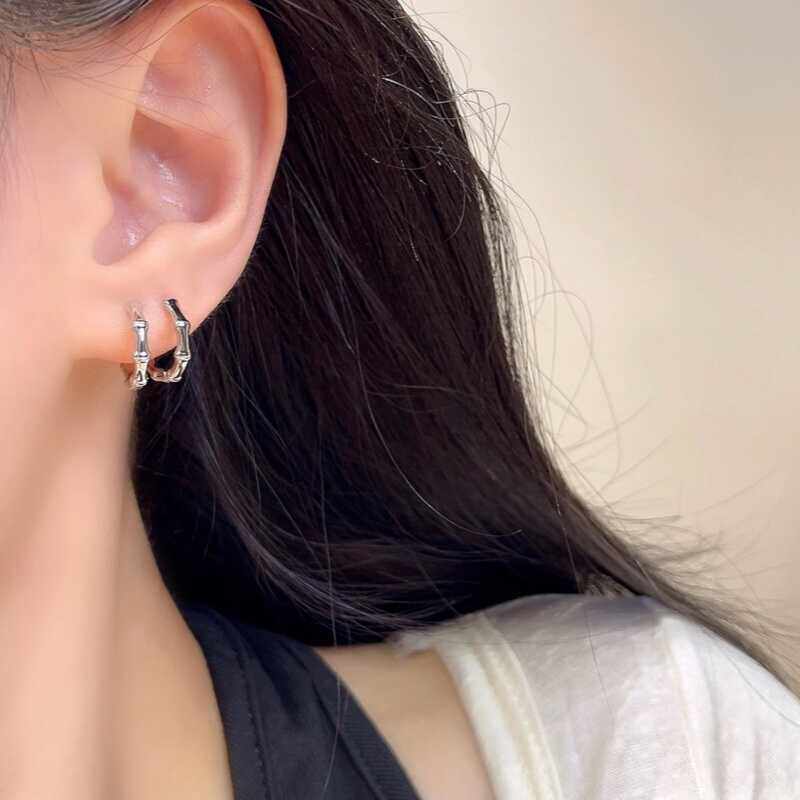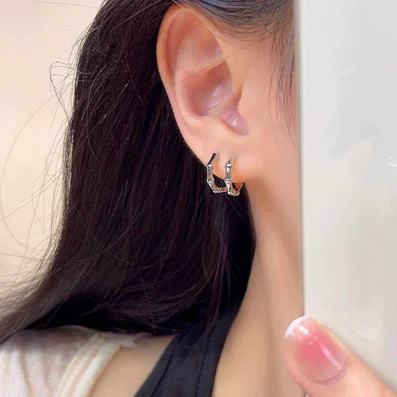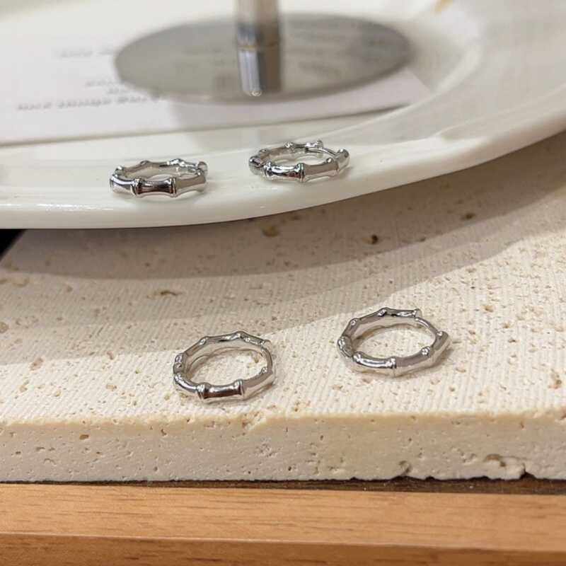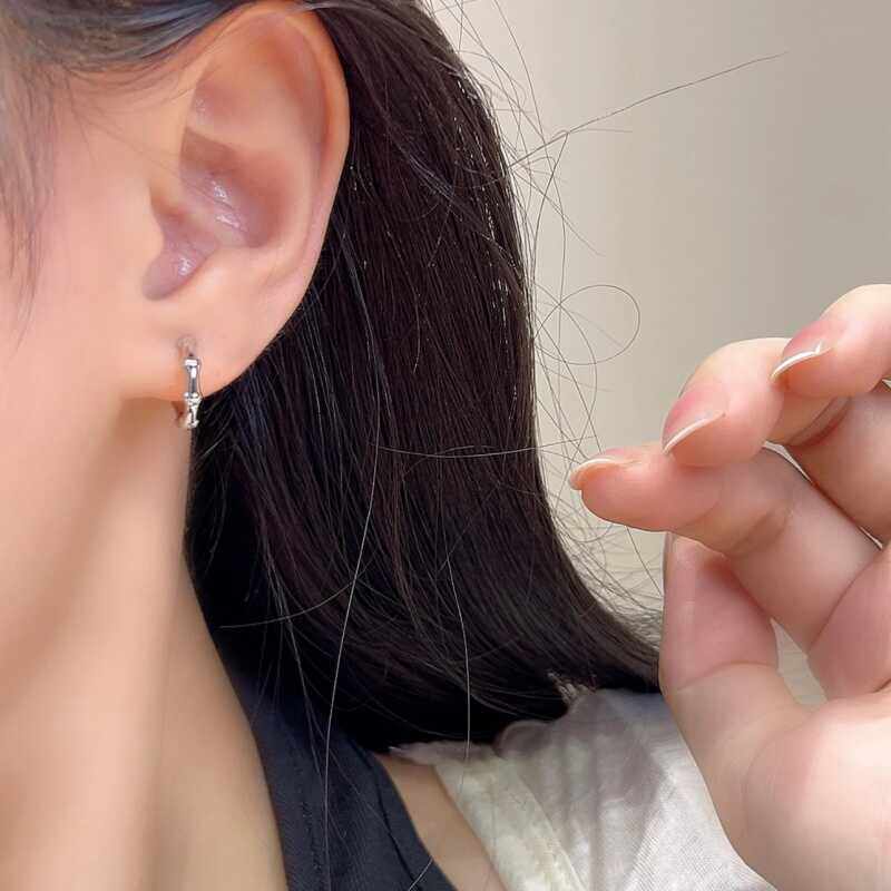 时尚 爆款 耳饰 精致圈圈耳环2024新款 s925纯银简约竹节耳扣百搭个性