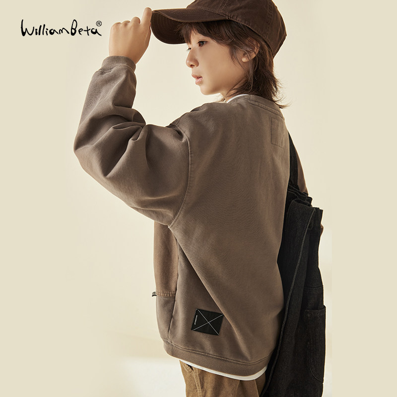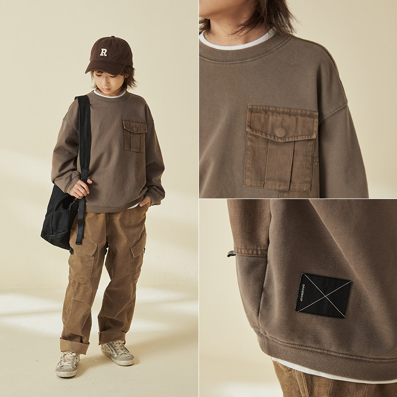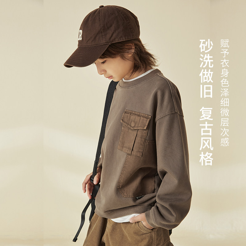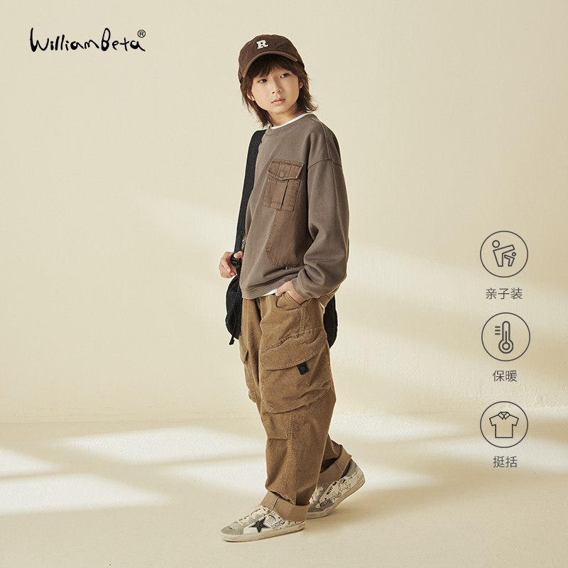 williambeta24冬新款 卫衣亲子 460高磅针梭拼复古砂洗贴袋儿童长袖