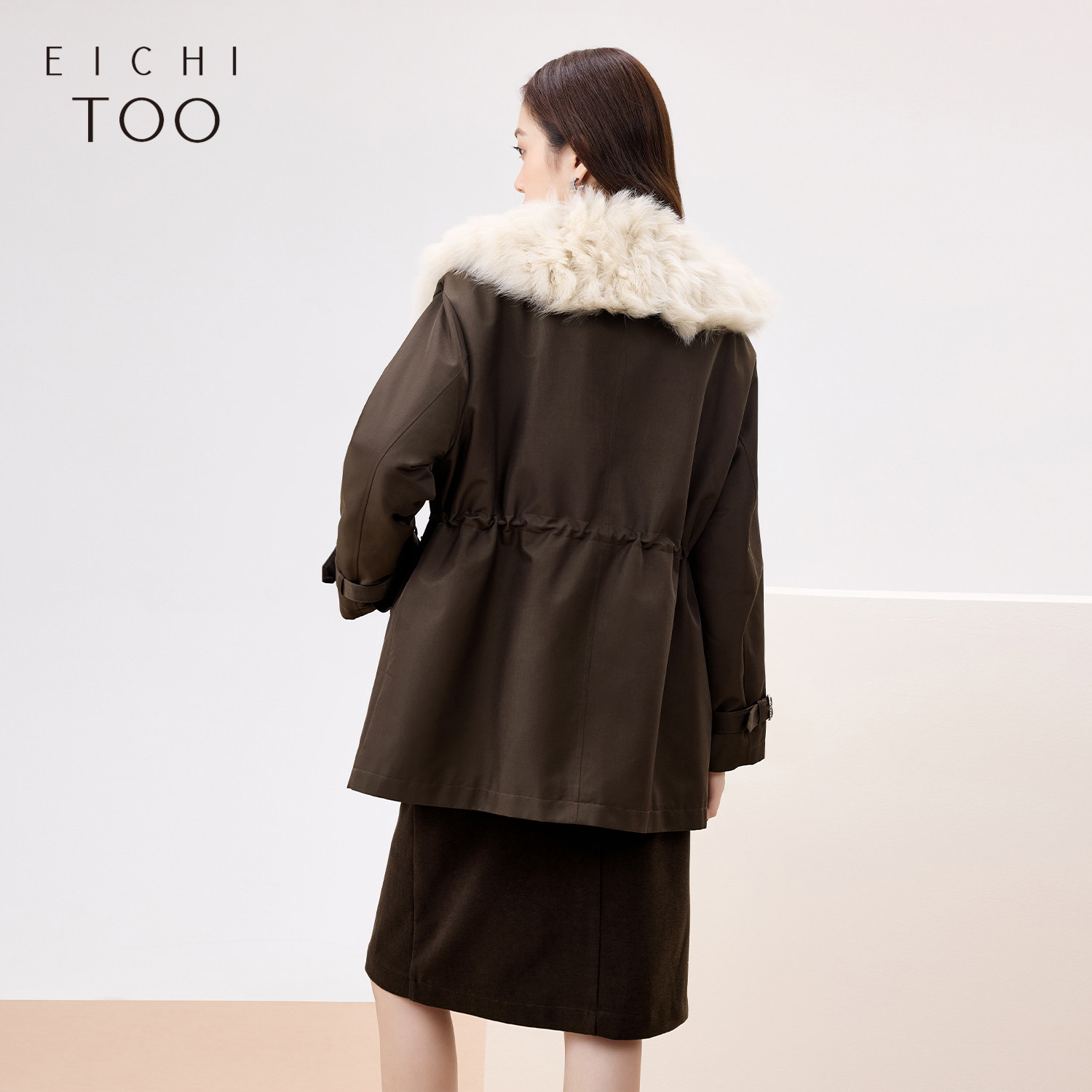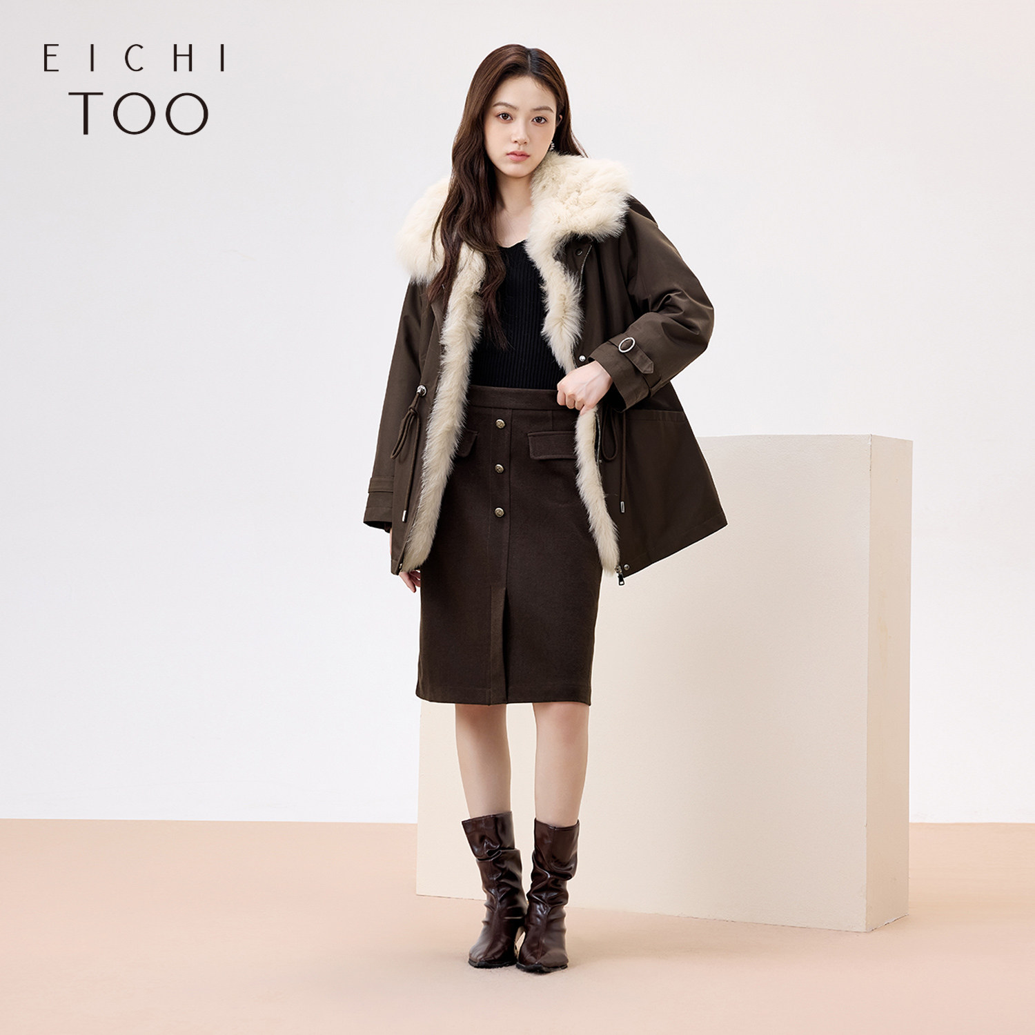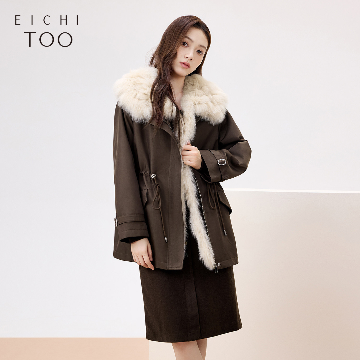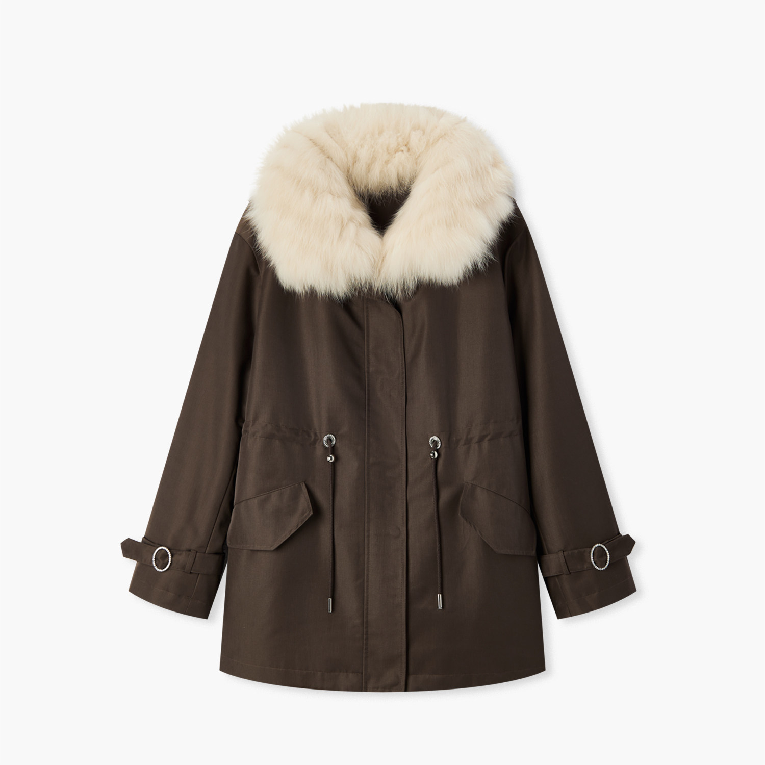 显白皮草外套 深棕色时尚 爱居兔时尚 皮草外套女冬季