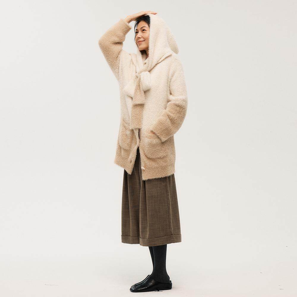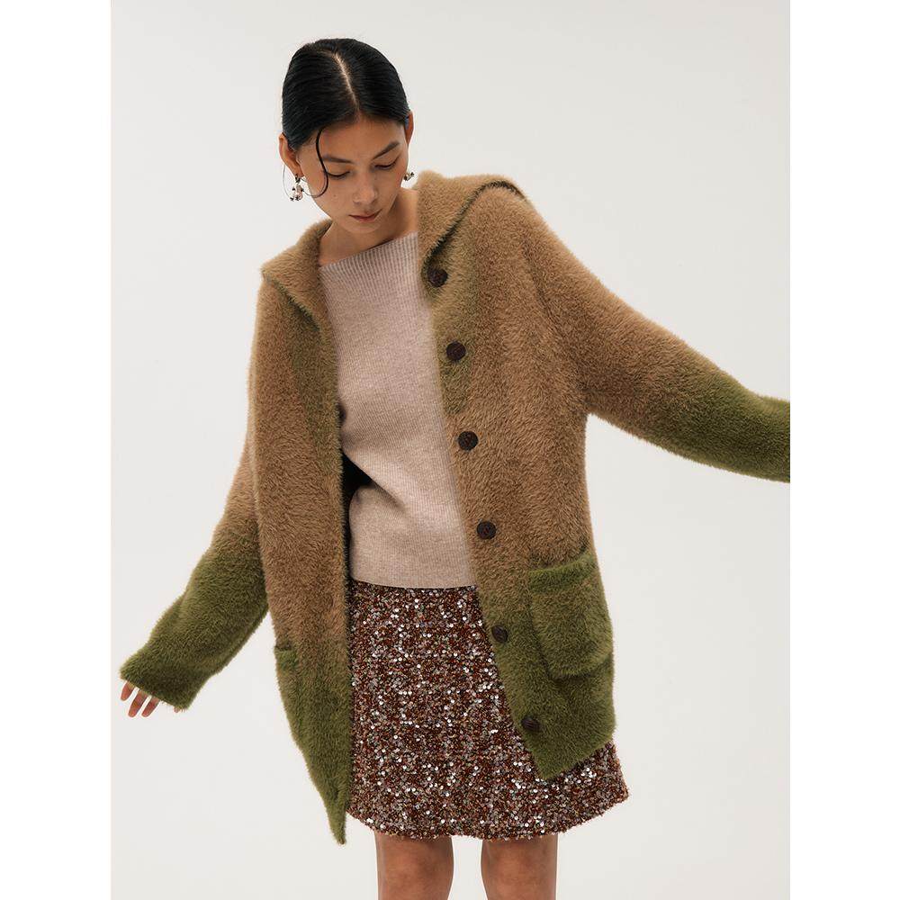 毛衣女冬慵懒风针织外套 百家好高领单排扣绵羊毛开衫 Basic House