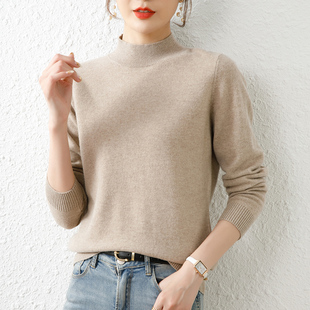 针织打底衫 品牌高级感羊毛衫 女半高领宽松毛衣秋冬加厚羊绒长袖