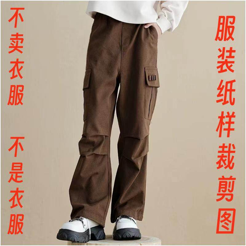 纸样裁剪图1470款 diy样板1 中大童休闲工装 长裤 1设计 裤 服装