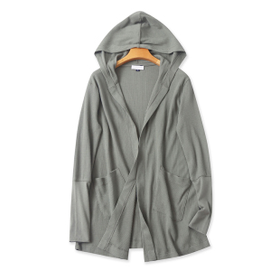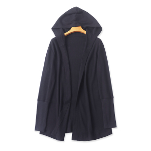 连帽开衫 女显瘦罩衫 披肩 薄中长款 上衣宽松外套19242 春秋新款 长袖