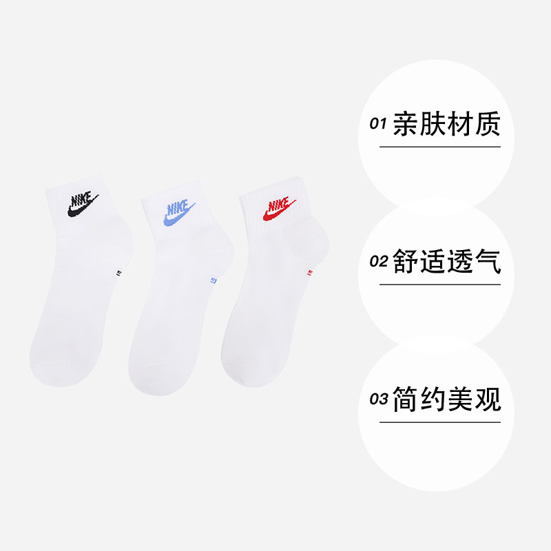 运动袜透气中筒袜DX5074 三双装 Nike耐克男袜女袜新款 911 自营