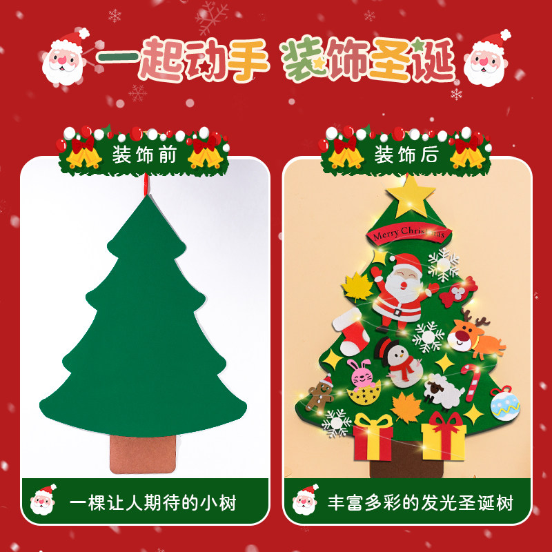 圣诞节毛毡圣诞树家用圣诞装 饰品门窗挂件儿童DIY氛围感布置带灯