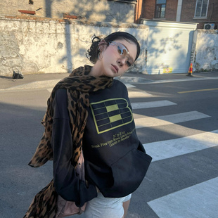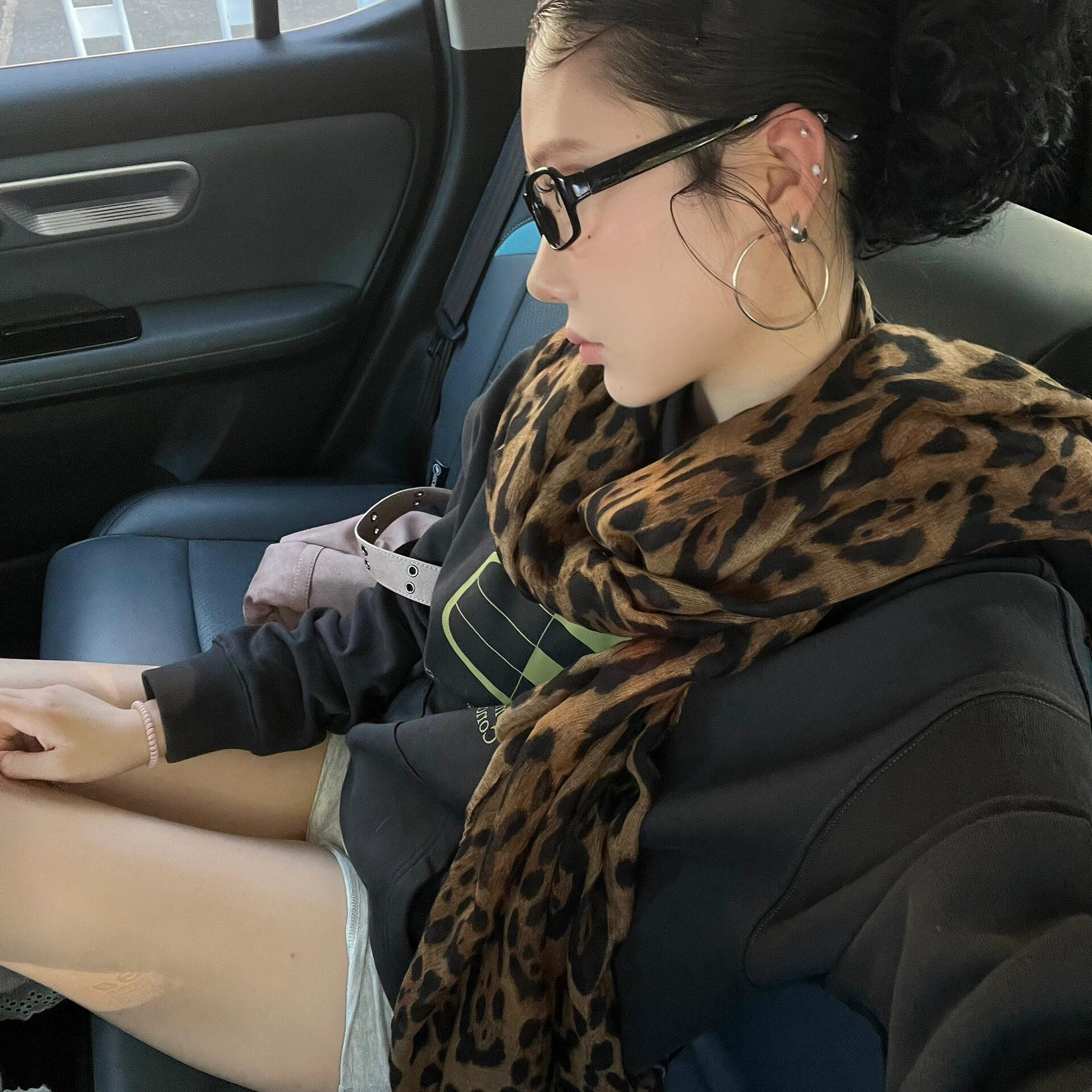 女款 印花氛围感围巾冬季 披肩围脖 豹纹丝巾复古千禧风薄款 网红同款