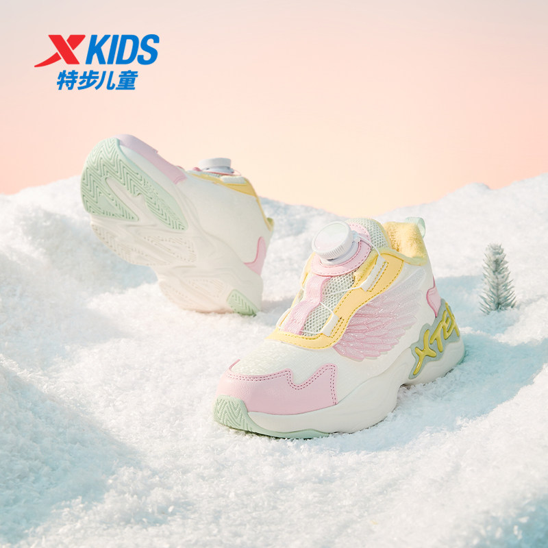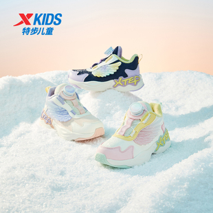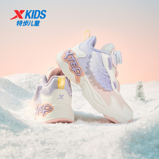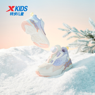 女童皮面防水旋转扣运动鞋 特步童鞋 儿童秋冬小童加绒保暖二棉棉鞋