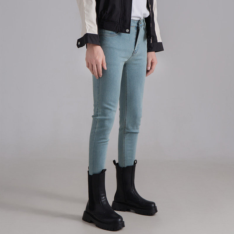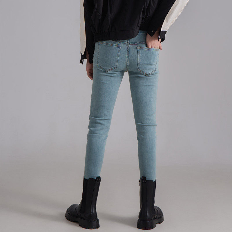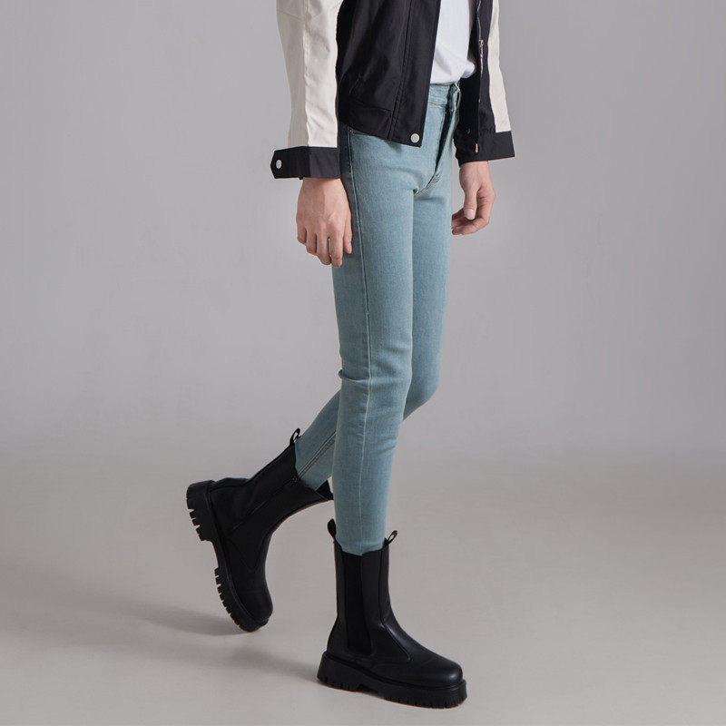 小腿长裤 流行牛仔裤 韩版 男修身 高弹力水洗怀旧蓝色潮牌高端小脚裤