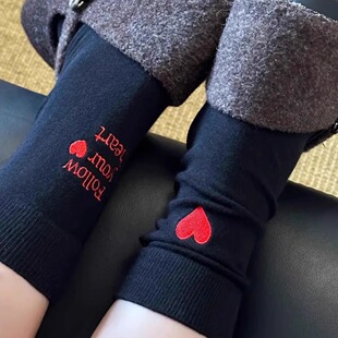 东大门原创爱心字母AB袜女中筒日系ins个性 小众鸳鸯袜春秋长袜子