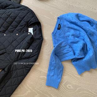 巨显白克莱因蓝宽松上衣2024秋冬新款 女 韩系超好看麻花毛衣针织衫