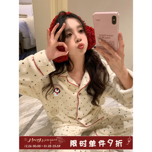 加绒女士家居服套装 TeenieWeenie小熊红色北美绒睡衣新年款 秋冬季