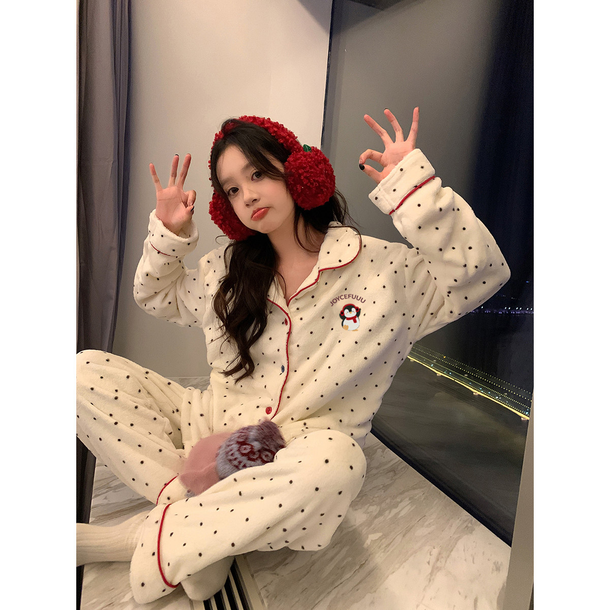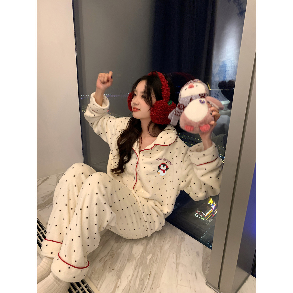 女款 珊瑚绒防静电套装 加绒加厚休闲家居服 新款 芬腾女士睡衣秋冬季