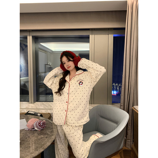 宽松休闲加大码 芬腾女士睡衣春秋纯棉长袖 新款 套装 全棉家居服 开衫
