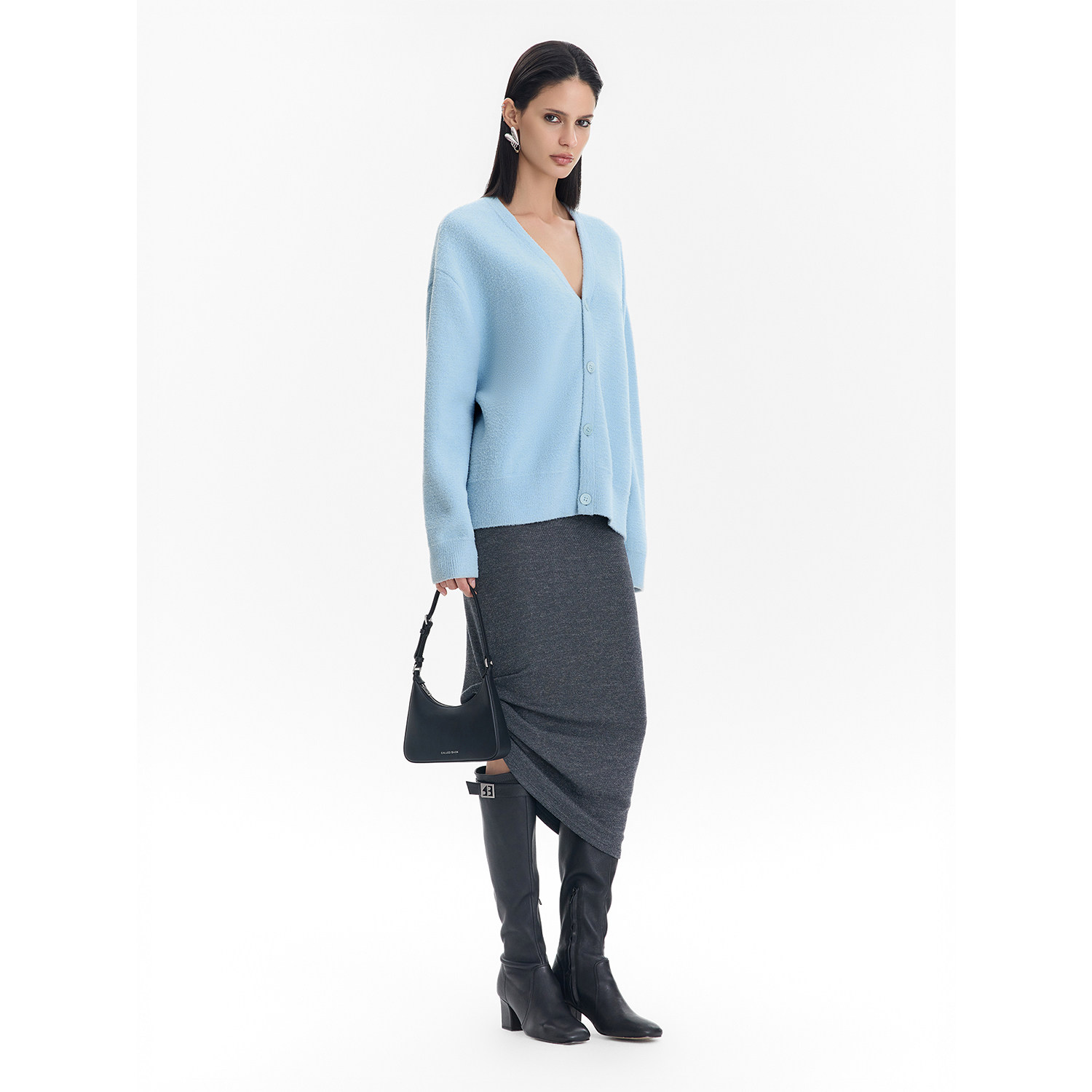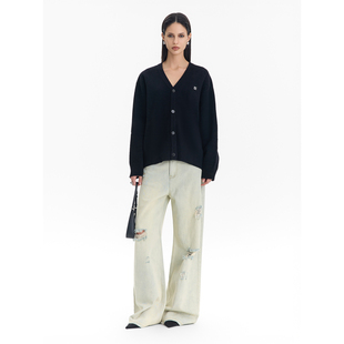 学院风宽松V领长袖 女26春款 CalledBack针织开衫 上衣 姜妍同款