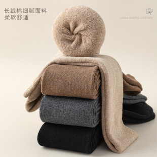 长筒袜子男秋冬款 保暖高筒长袜 纯棉防臭过膝全棉加厚加绒毛巾冬季