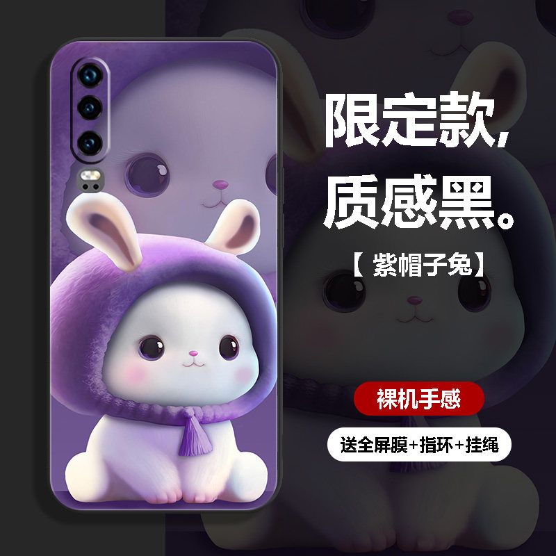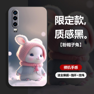 卡通萌兔定制 创意简约时尚 适用华为P30手机壳P30保护套ELE AL00防摔全包软超薄情侣潮牌网红男液态硅胶女个性