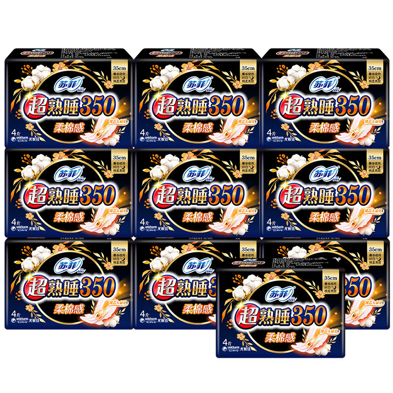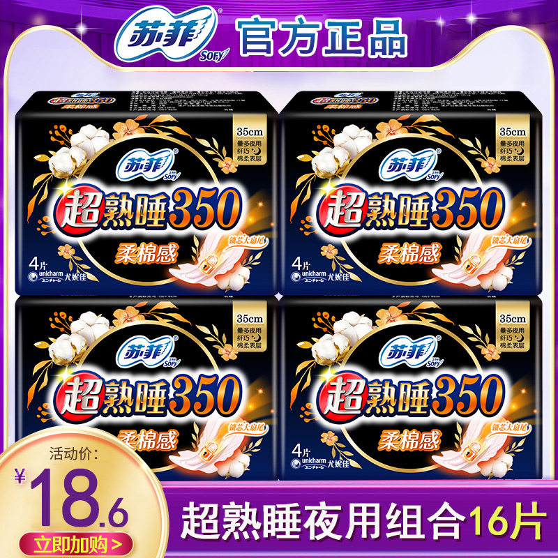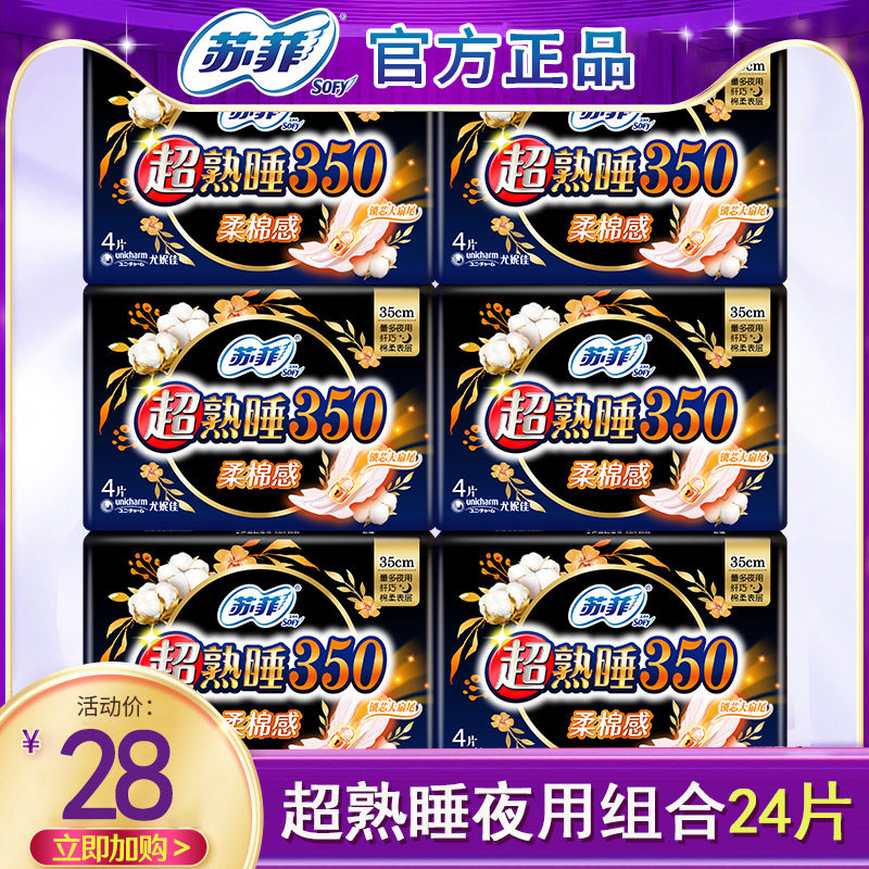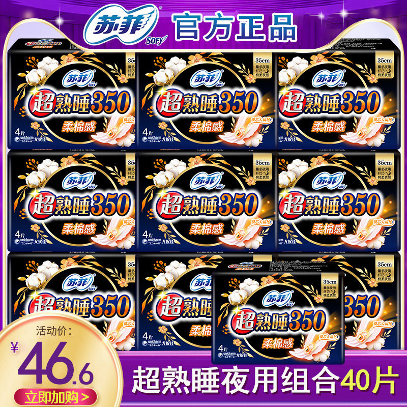 苏菲卫生巾超熟睡棉柔夜用350mm囤货姨妈巾女组合装 整箱官网正品
