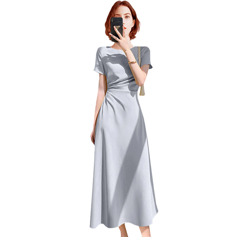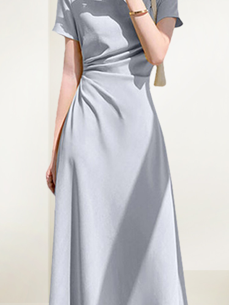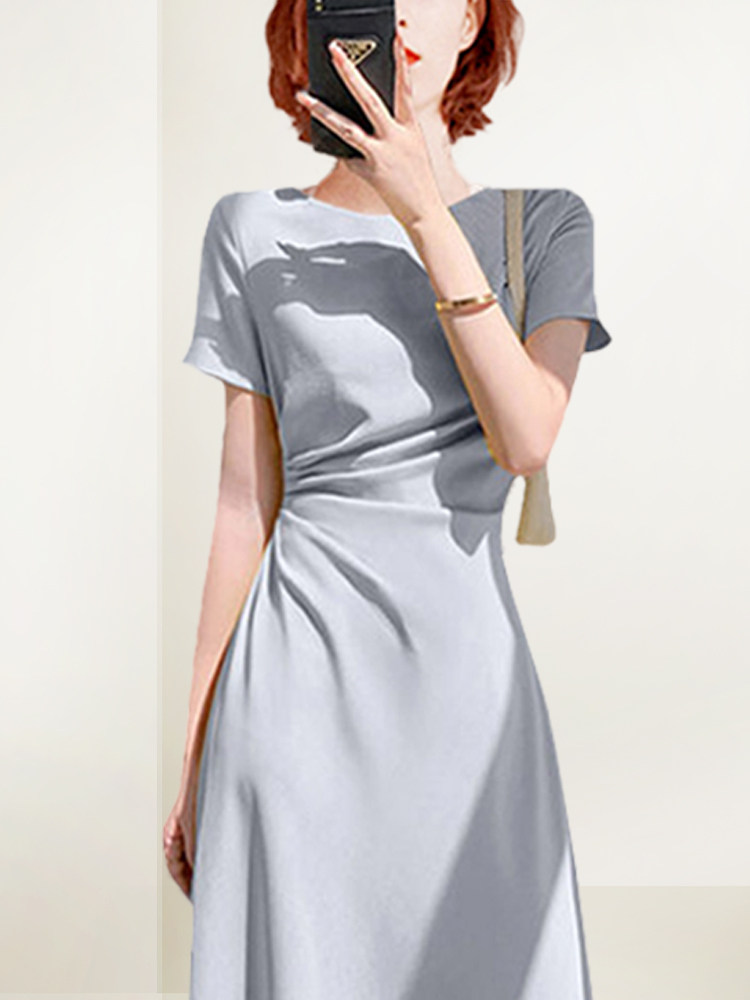轻奢不规则长裙修身 法式 短袖 新款 气质裙子 褶皱连衣裙女2026年夏装