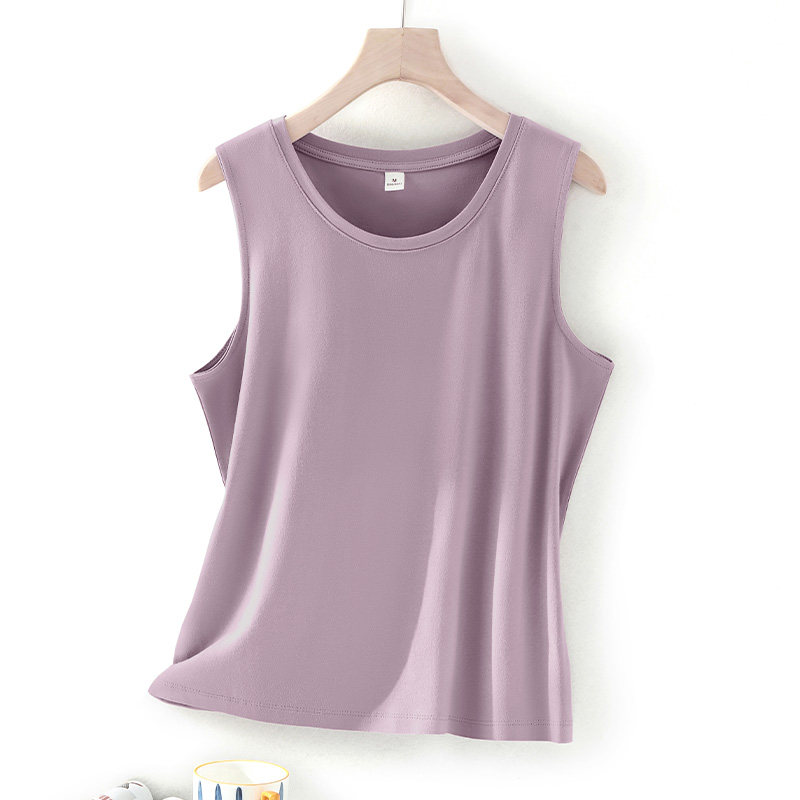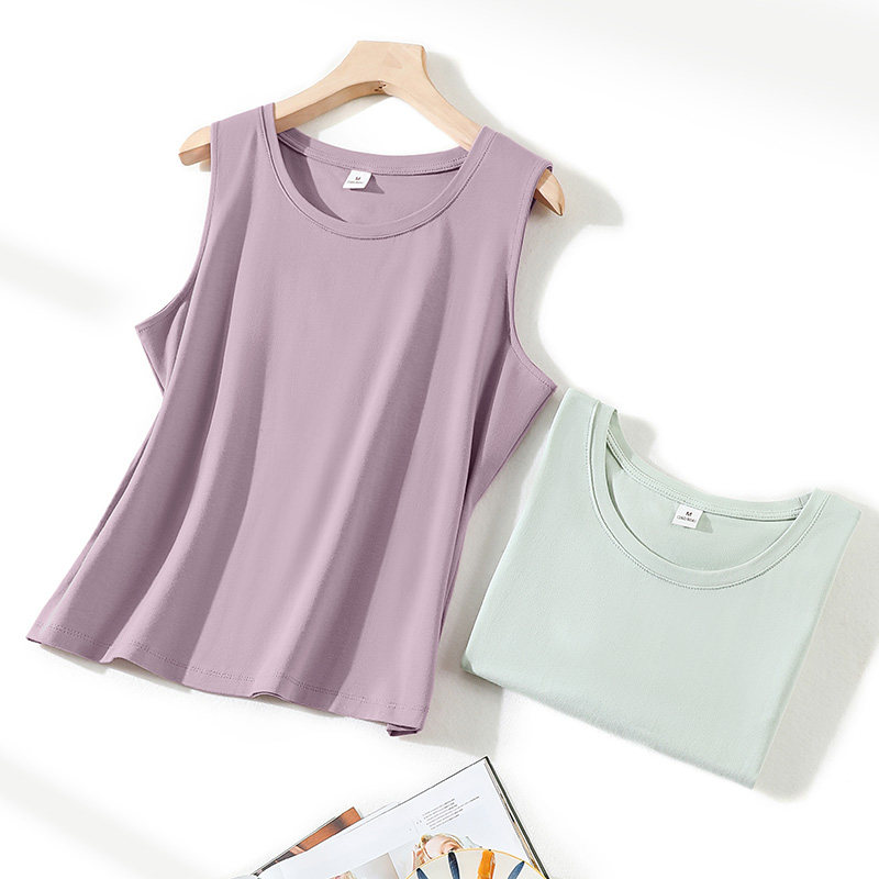 宽肩带纯棉内搭打底吊带夏 t恤大码 灰紫色女士背心外穿宽松版 无袖
