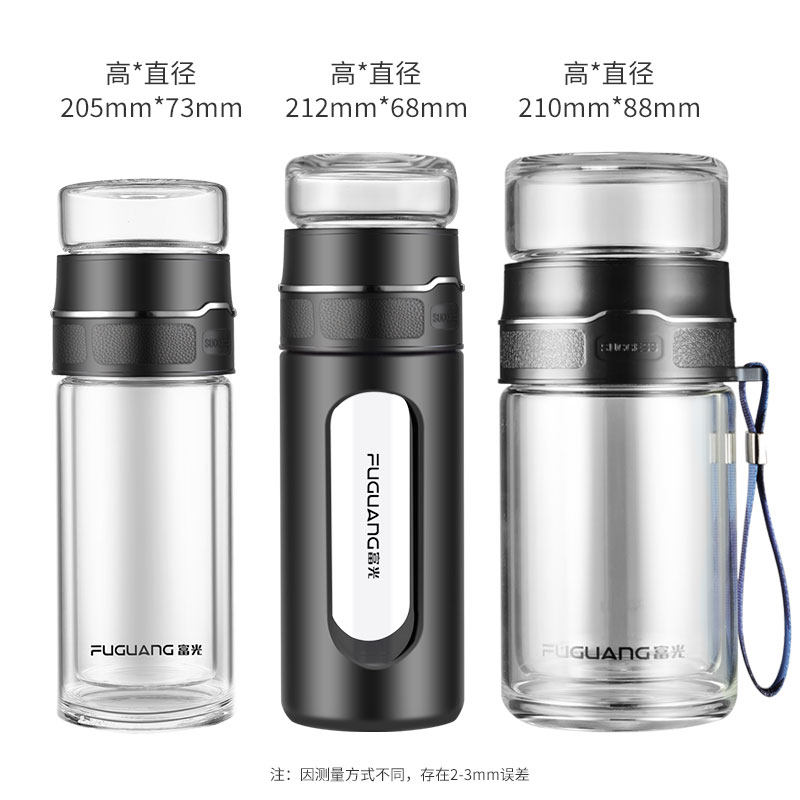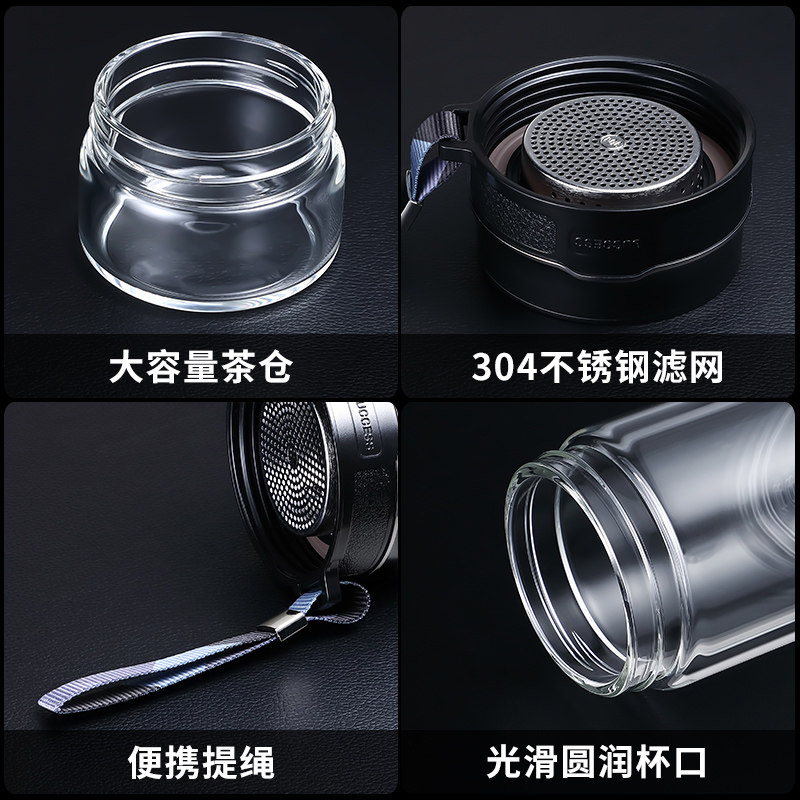 大容量双层隔热玻璃水杯男士 带盖家用男泡茶杯茶水分离家用耐高温