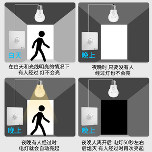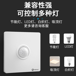 红外人体感应开关面板86型220v楼道走廊智能光控LED灯延时开关