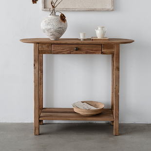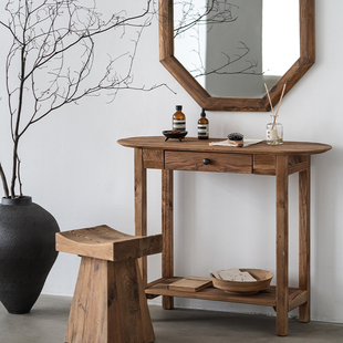 美式 复古做旧玄关靠墙半圆台入户进门置物供桌小户型客厅案台边几