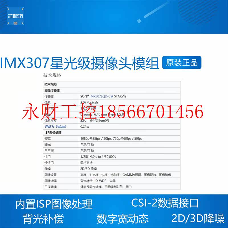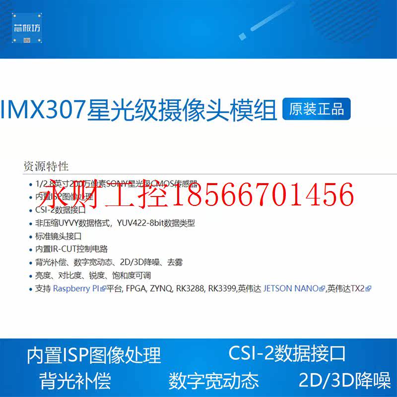 IMX307 NANO MIPI JETSON ¥ CSI树莓派 议价星光级ISP摄像头模组
