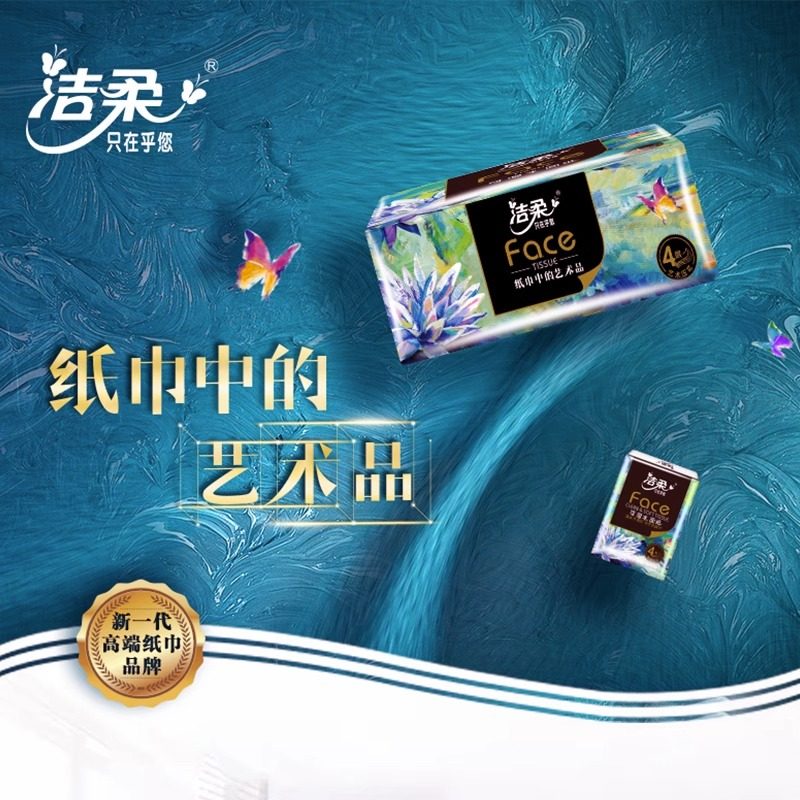 洁柔油画抽纸整箱批发纸巾家用实惠装 大号可湿水自然无香绵柔感