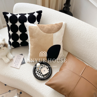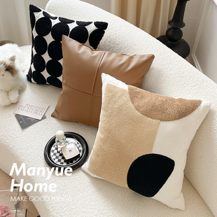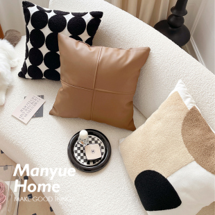 蔓越家 北欧复古风PU皮面抱枕抱枕套沙发抽象腰靠枕床头靠垫含芯
