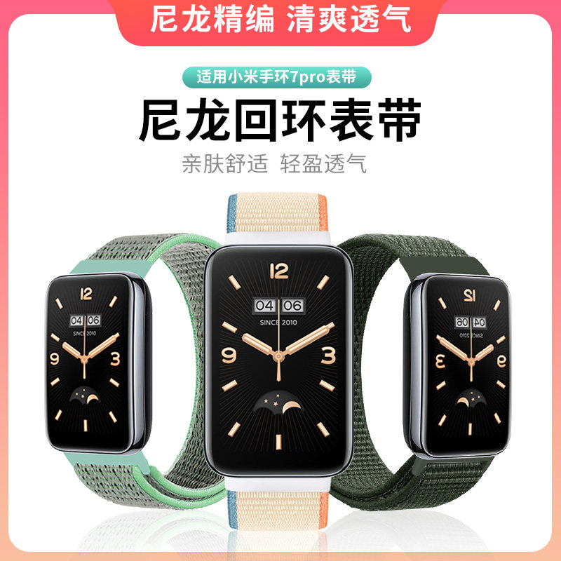 适用小米手环7pro表带尼龙回环编织弹力替换带原配卡扣款 智能运动手环7pro腕带透气夏日高山ins风男女 nfc版