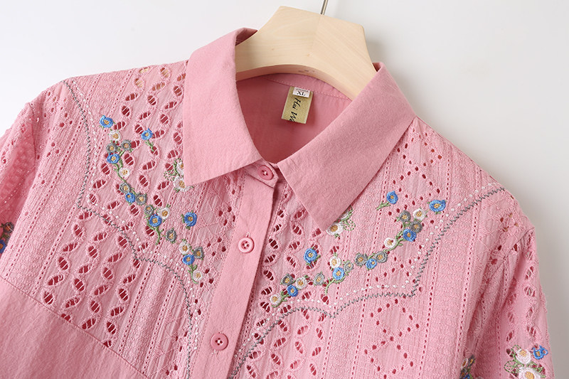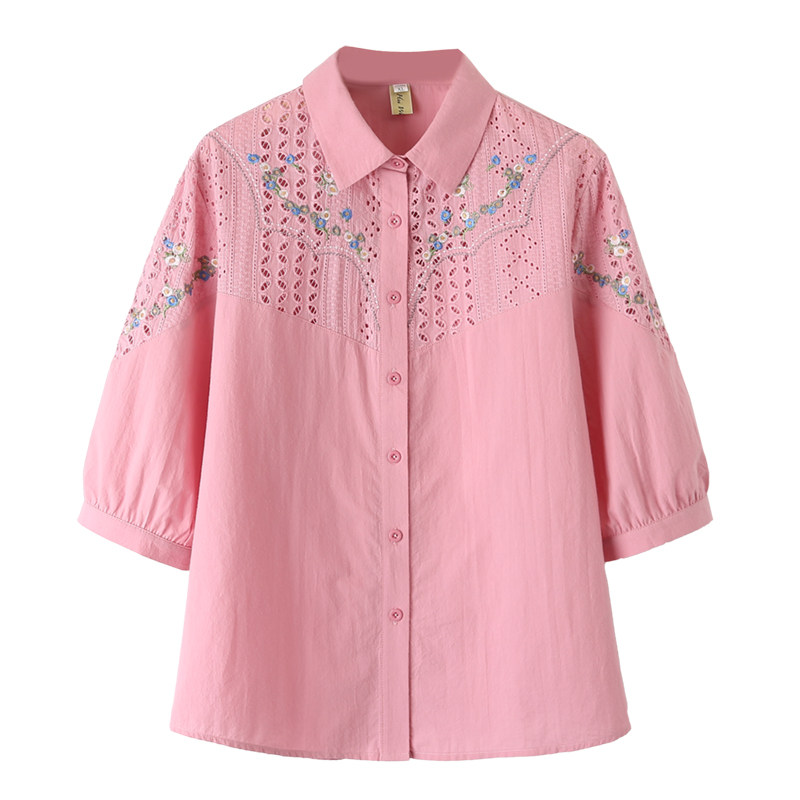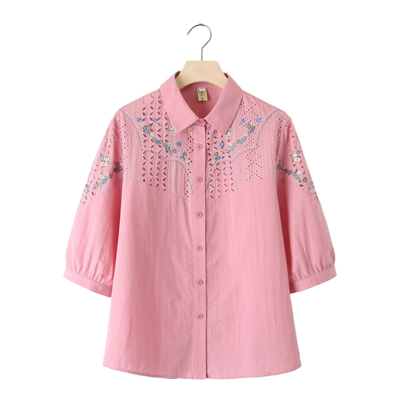 显瘦衬衫 2023夏季 大码 休闲上衣200斤胖mm镂空绣花七分袖 女士新款