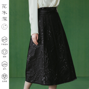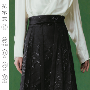 改良半裙提花长裙礼服阑干半身裙 花木深马面裙新中式 明星同款