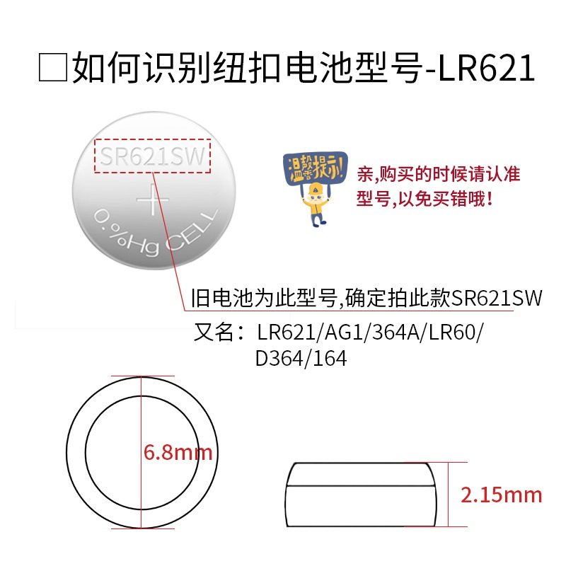 164 364 LR60手表电池1.5V电子通用 LR621 SR621SW纽扣电池AG1