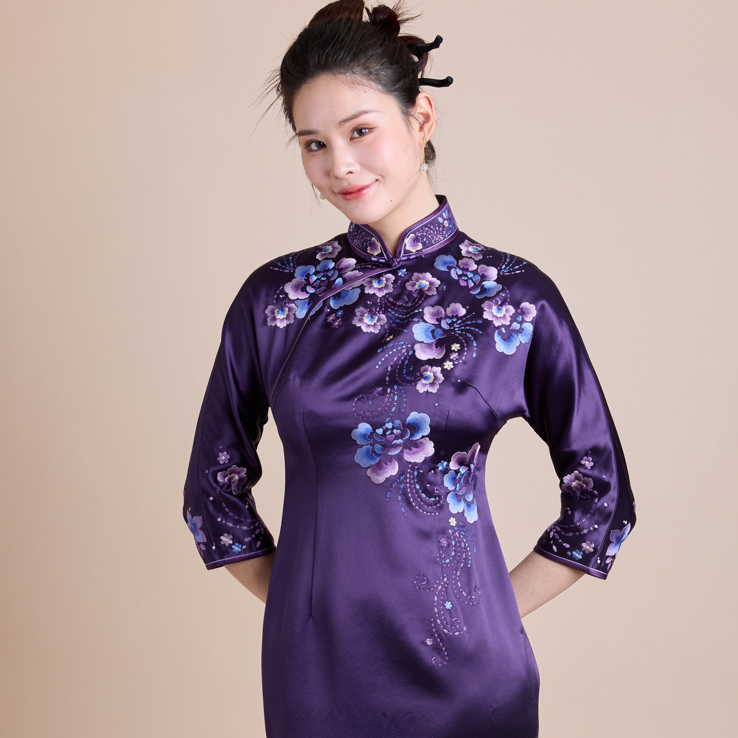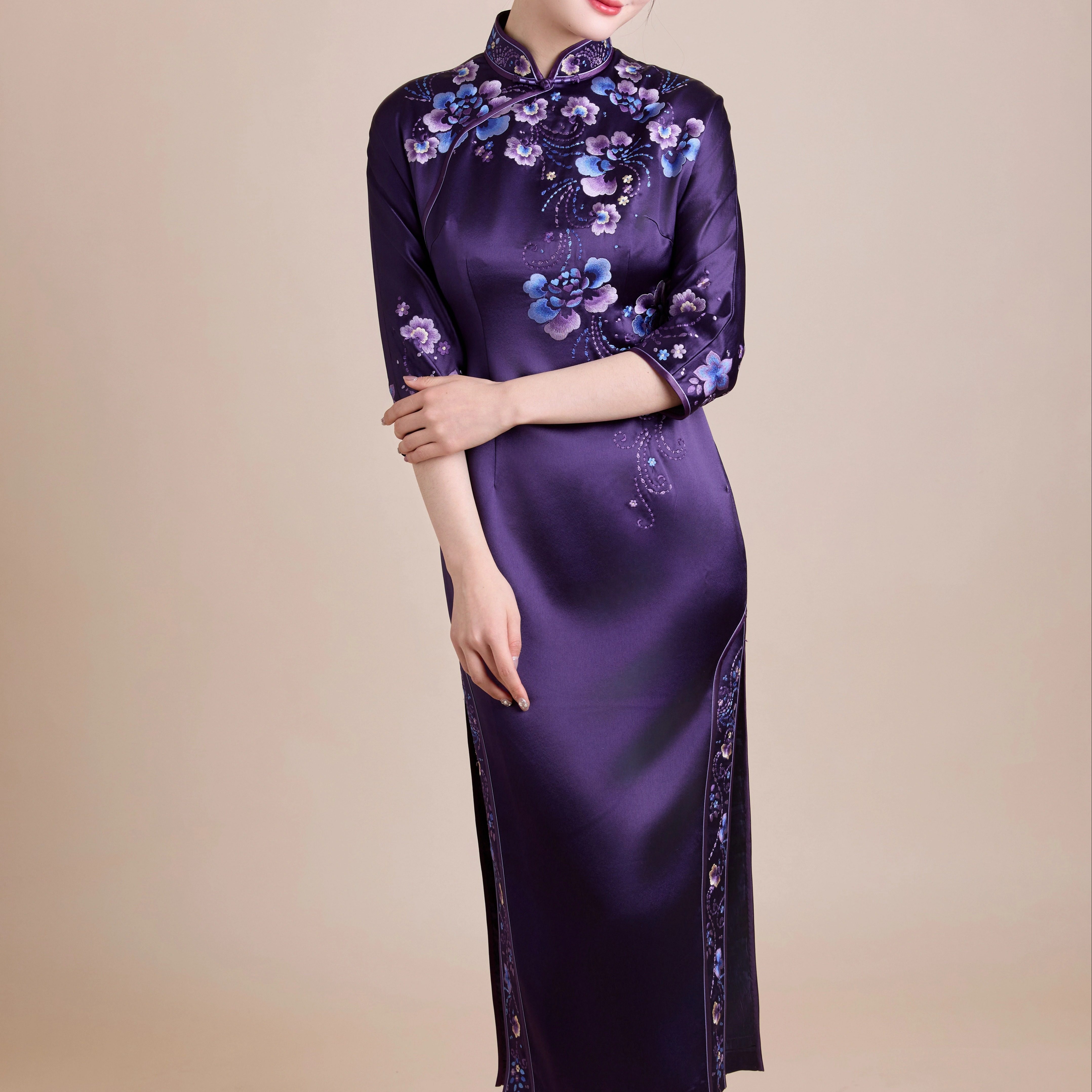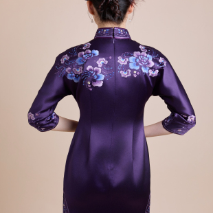 醋酸刺绣旗袍喜婆婆复古礼服妈妈岳母气质喜妈妈婚宴旗袍2025新款