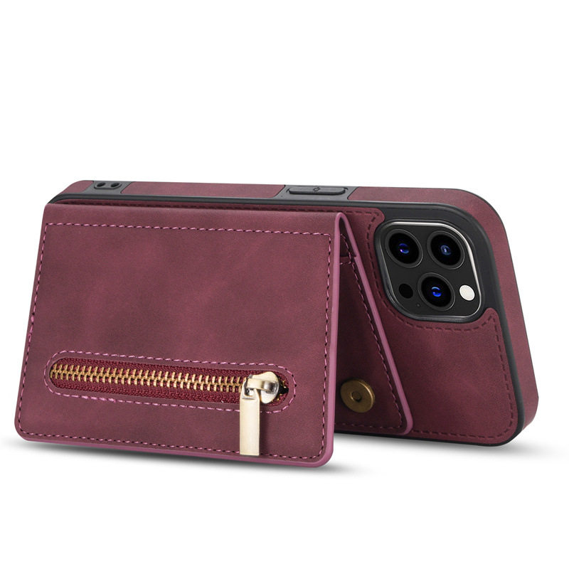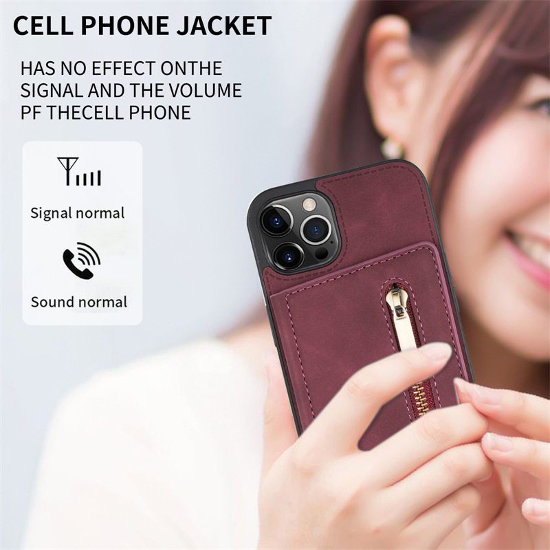 适用iPhone12 Max翻盖保护壳 13磨砂拉链插卡支架手机壳苹果13Pro