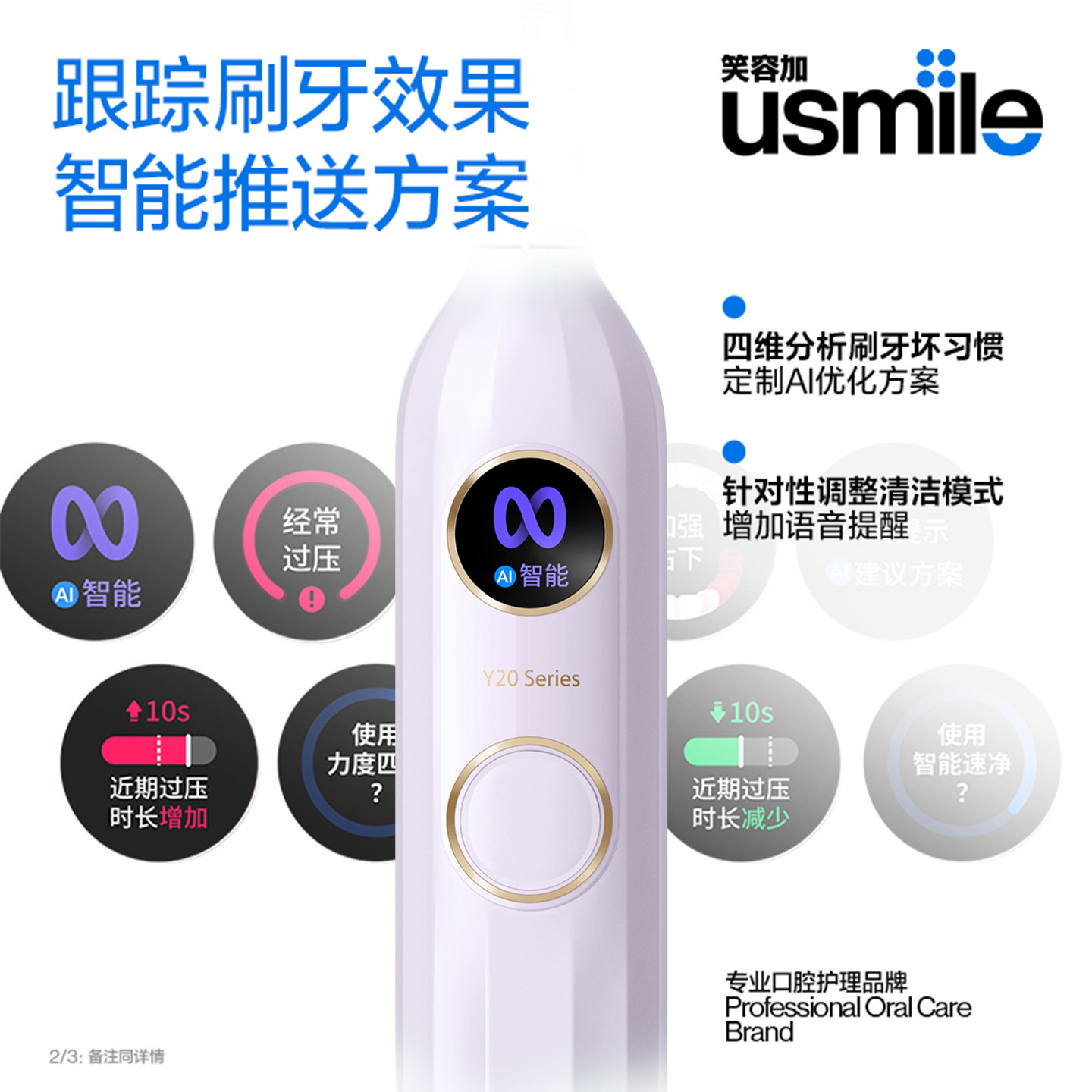 usmile笑容加电动牙刷成人Y20智能语音自动情侣礼物生日男女套装