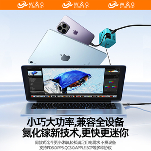 ipad华为小米手机数据线插头 氮化镓充电头自带伸缩线充电器快充一拖三适用于苹果充电线套装 iPhone17上新