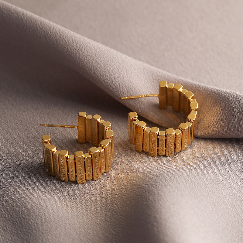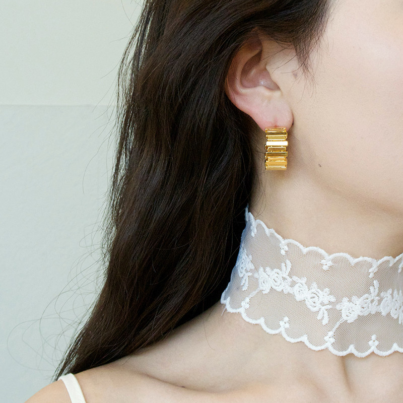 波光粼粼银色扭曲麻花耳环小众轻奢设计感清冷感三层交叉耳圈耳饰