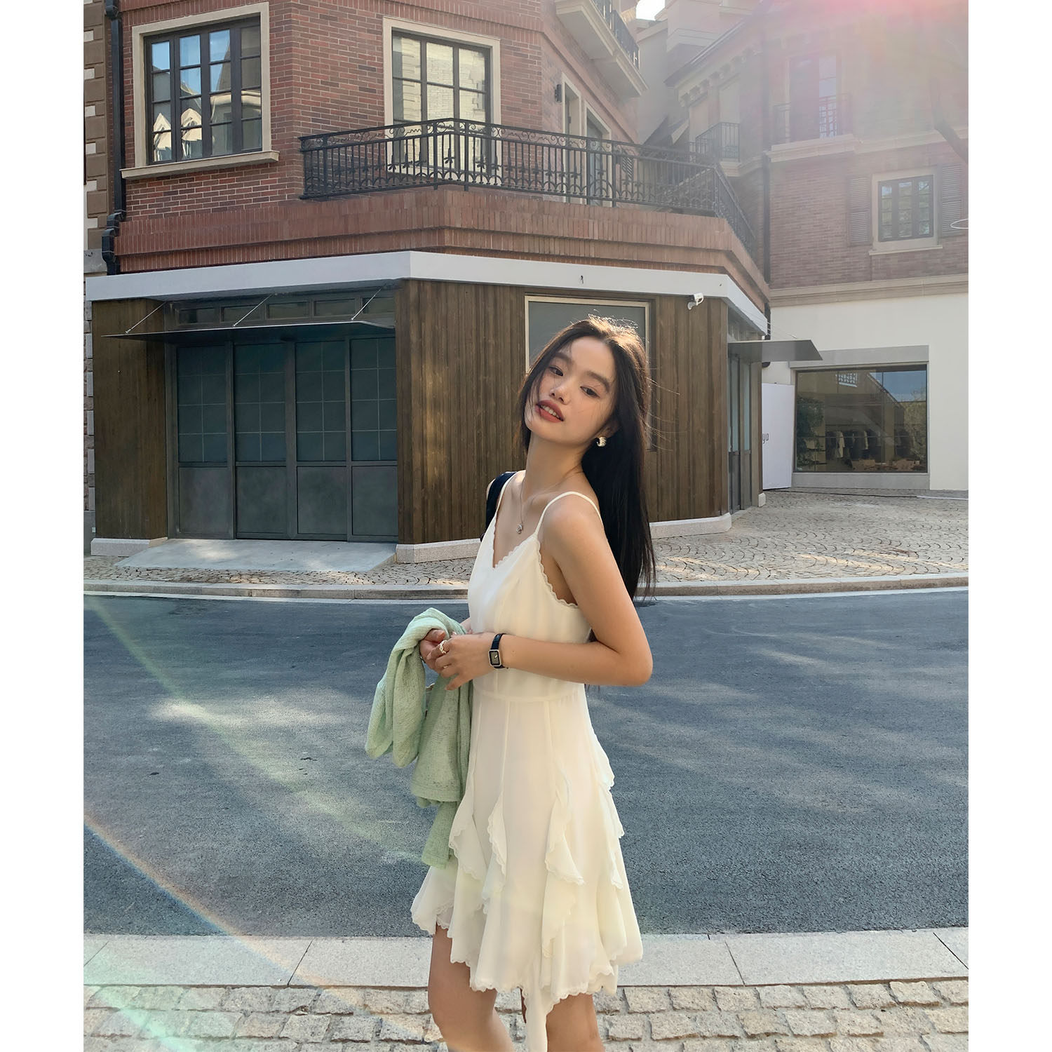 Palglg甜美风黑色丝绒背心连衣裙女冬季 木耳边直筒裙子 高级感法式