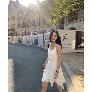 欧美ins时尚 纯欲露背系带鱼尾连衣裙 辣妹性感一字领抹胸长裙法式