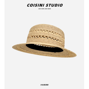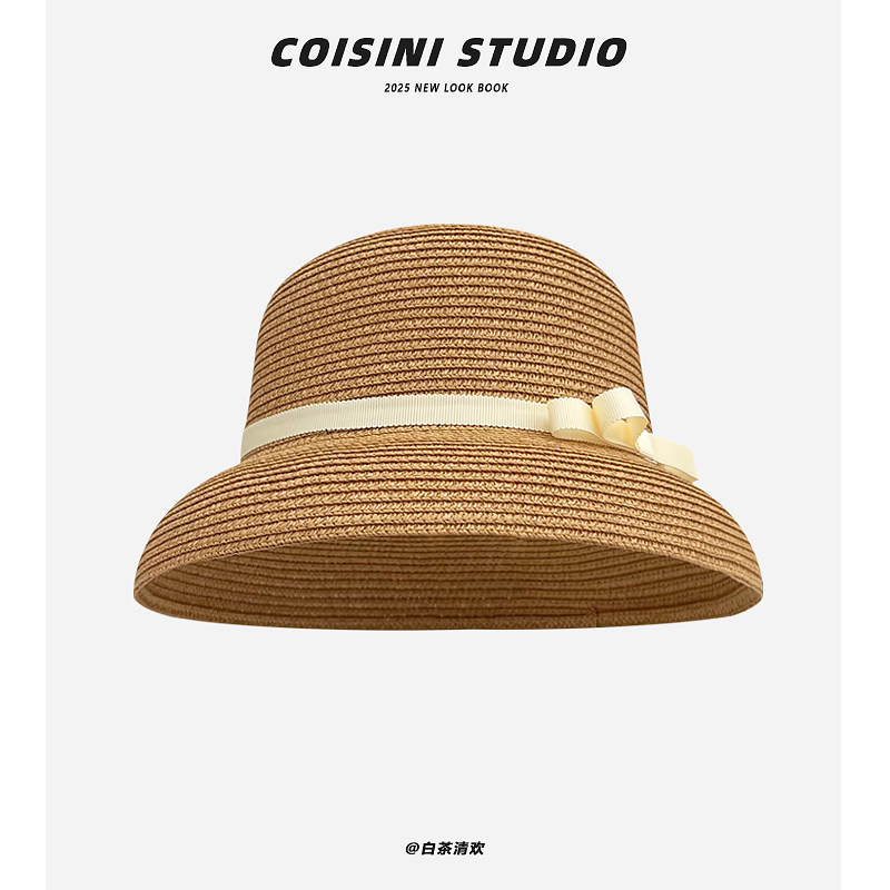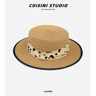 气质百搭蝴蝶结平顶草编帽子女夏季 出游海边度假防晒草帽太阳帽潮