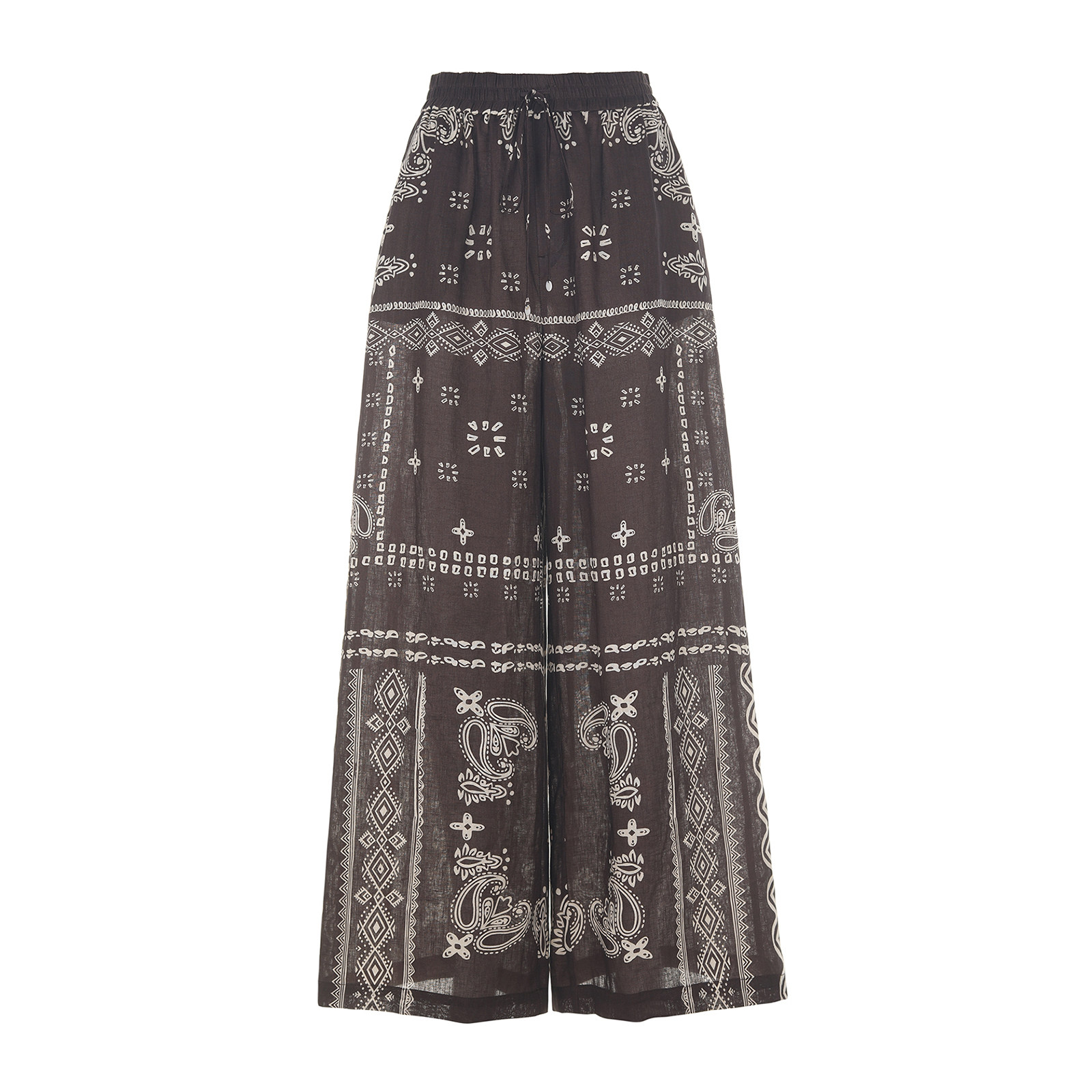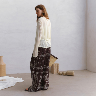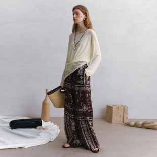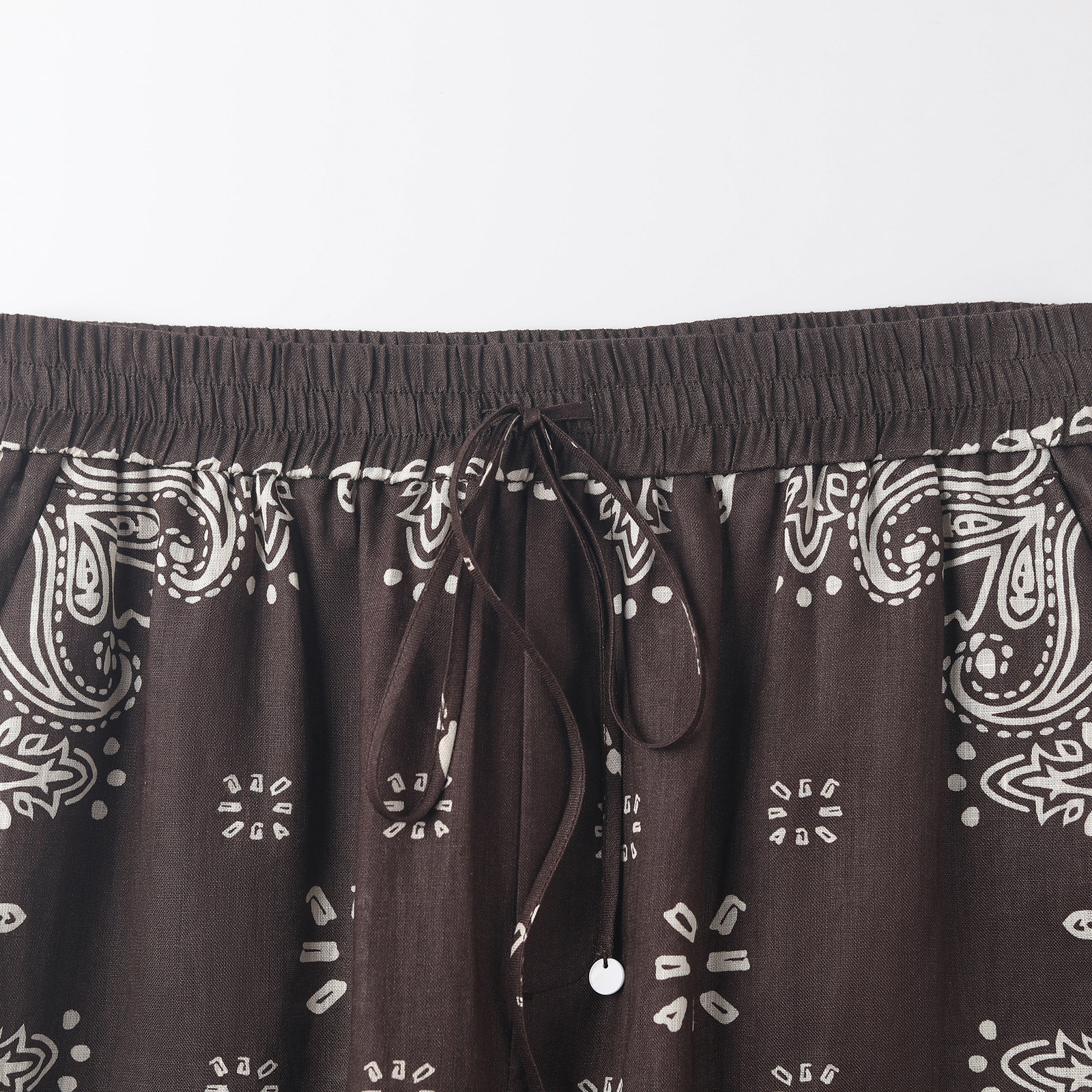 时髦休闲裤 2025夏新品 try100%亚麻咖色佩斯利漩涡纹印花长裤 wana