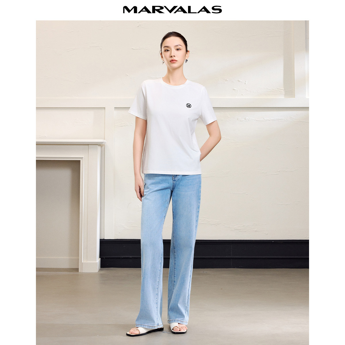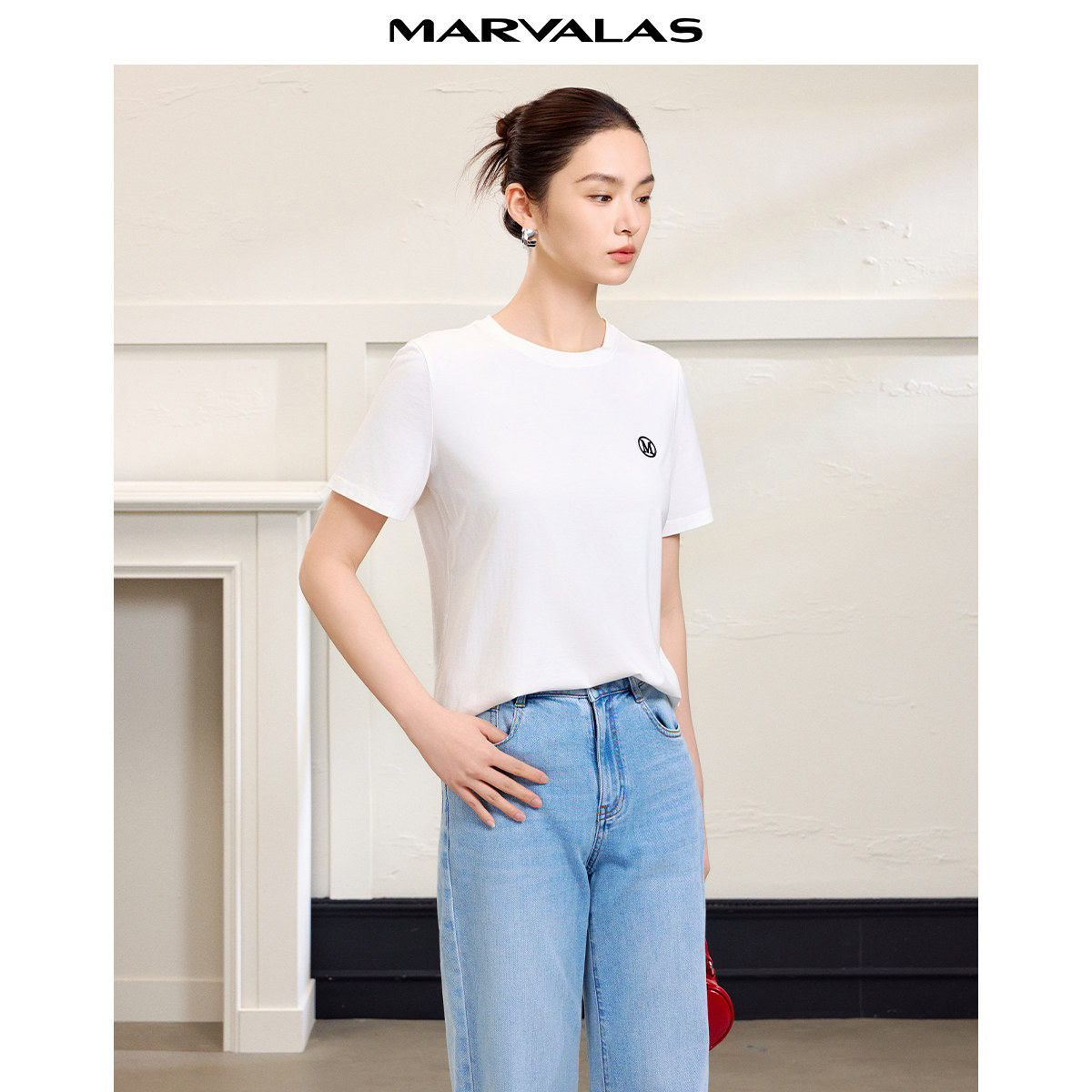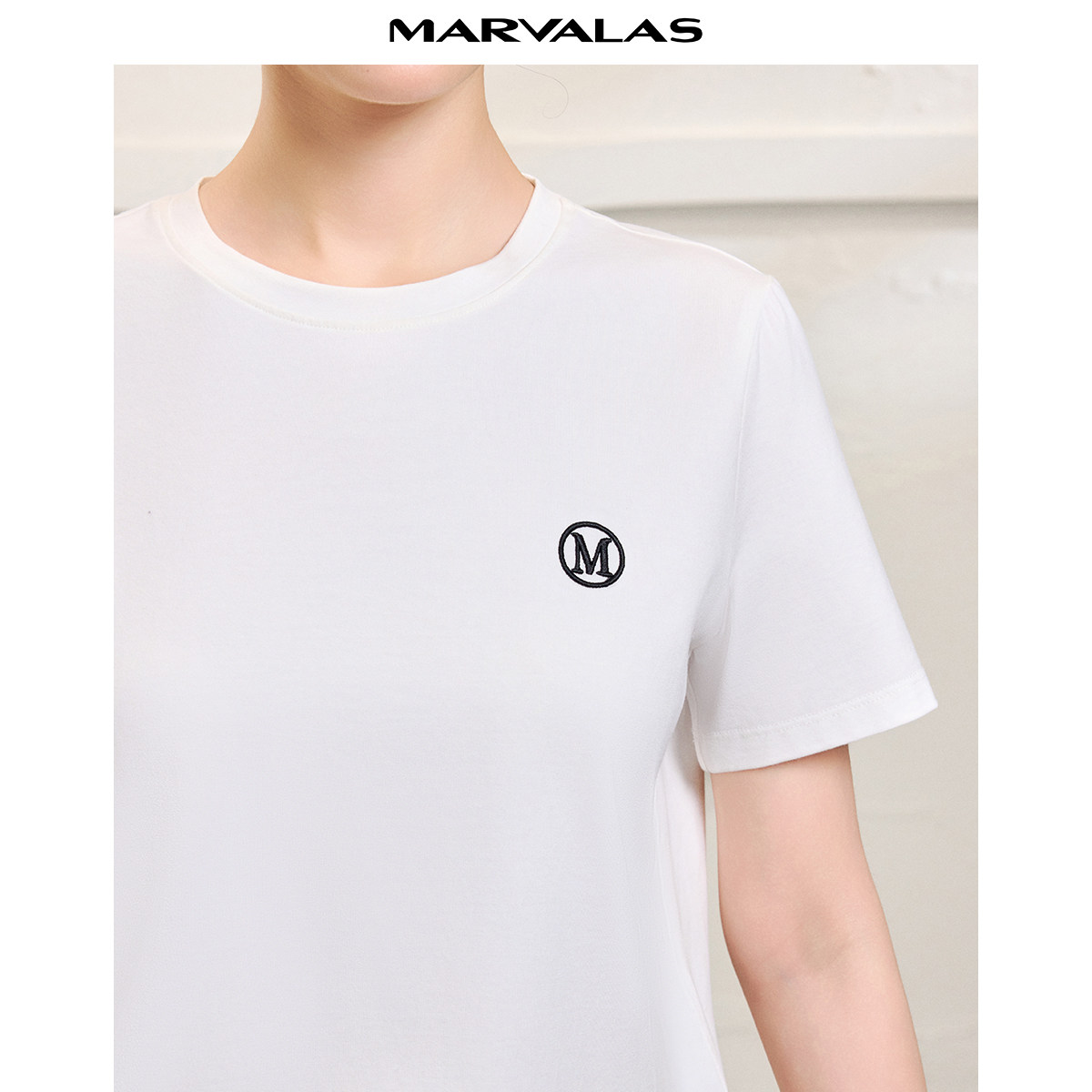 简约logo刺绣标通勤短袖 时尚 上衣 新款 曼德诗莫代尔棉T恤2025夏季
