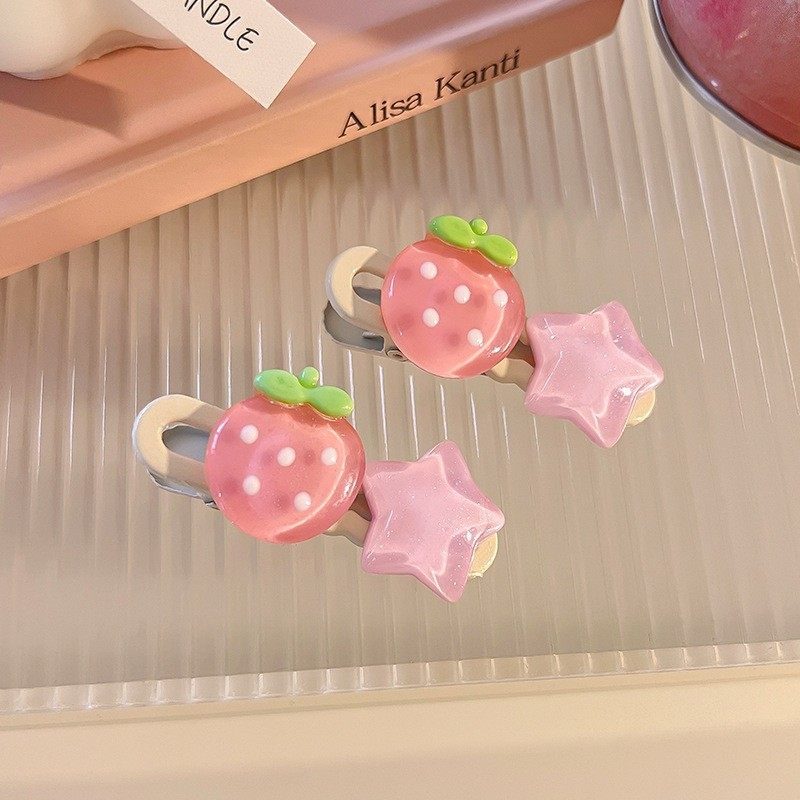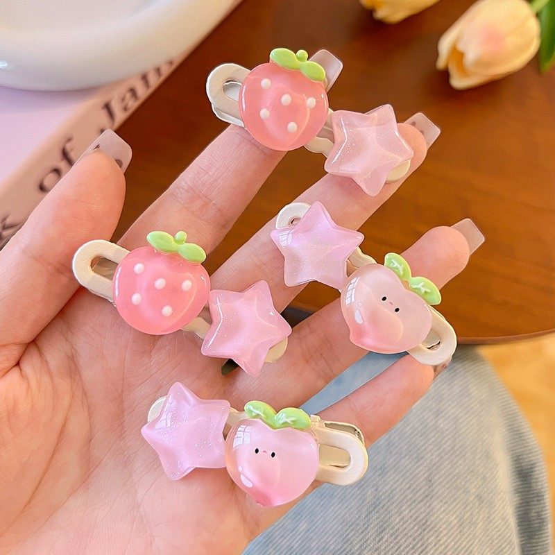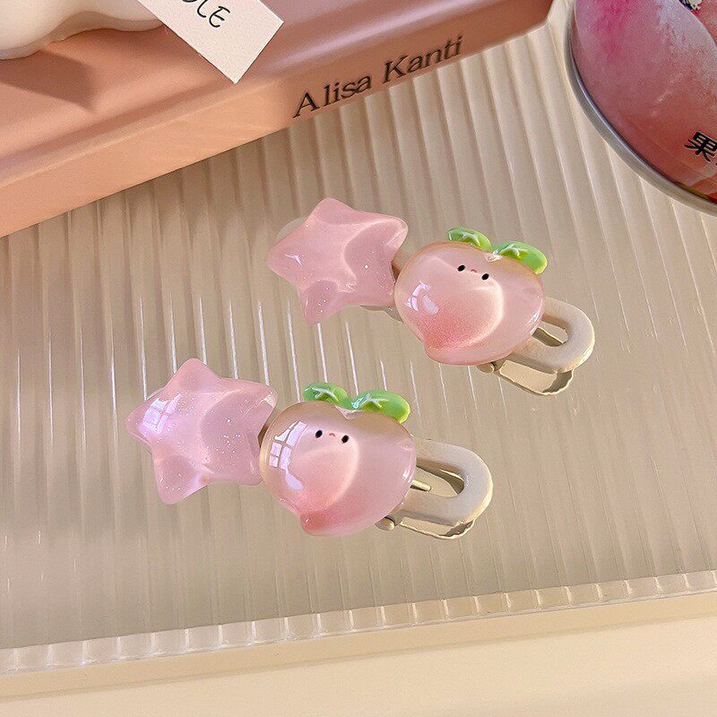新款 超甜粉色发夹系列少女水蜜桃山桃心小清新边夹发饰头饰小号