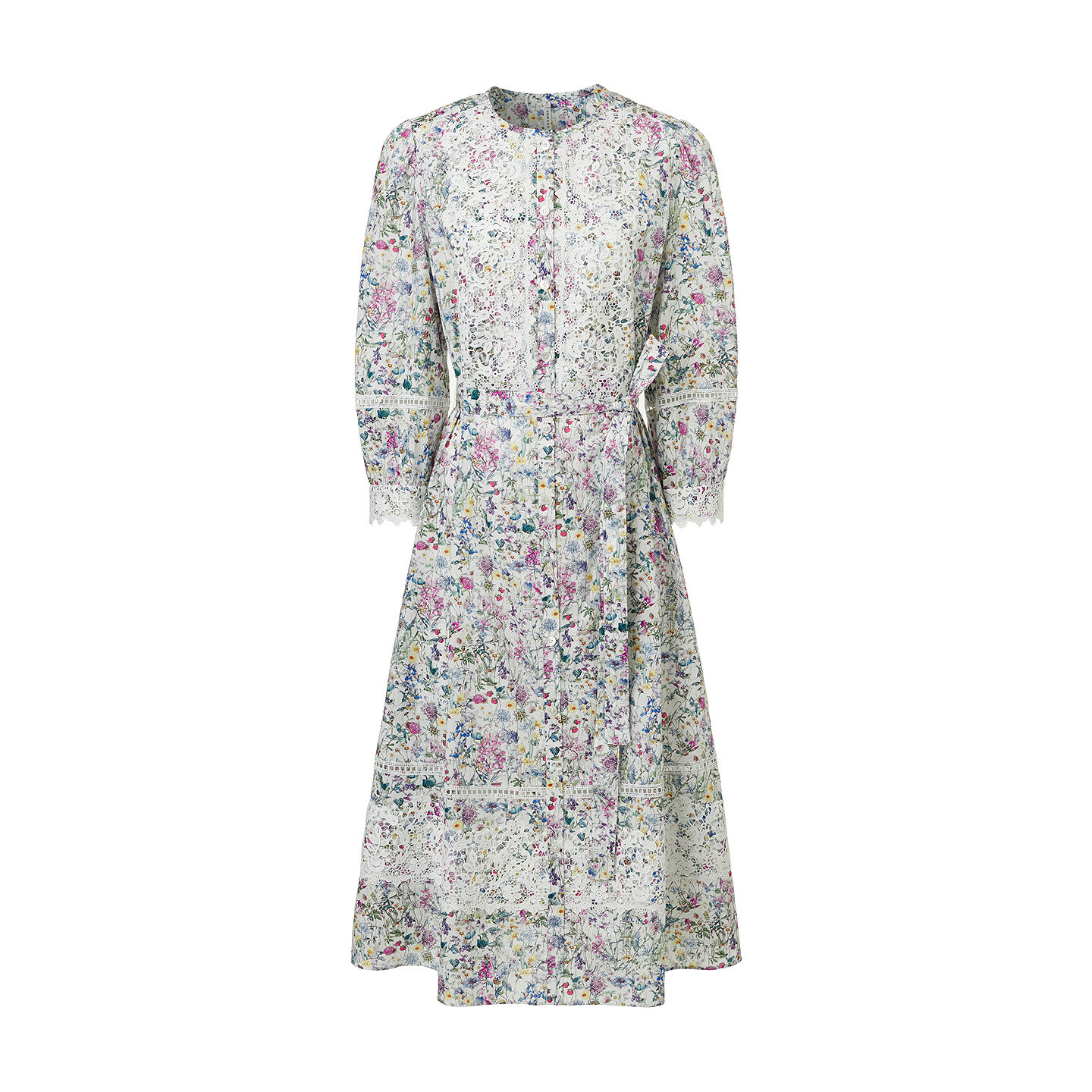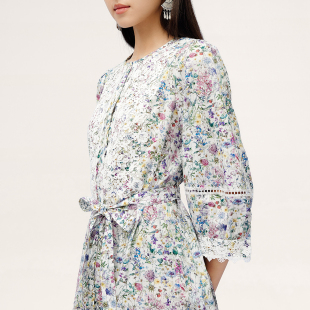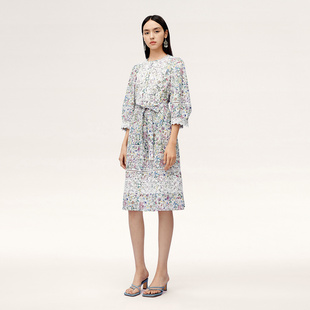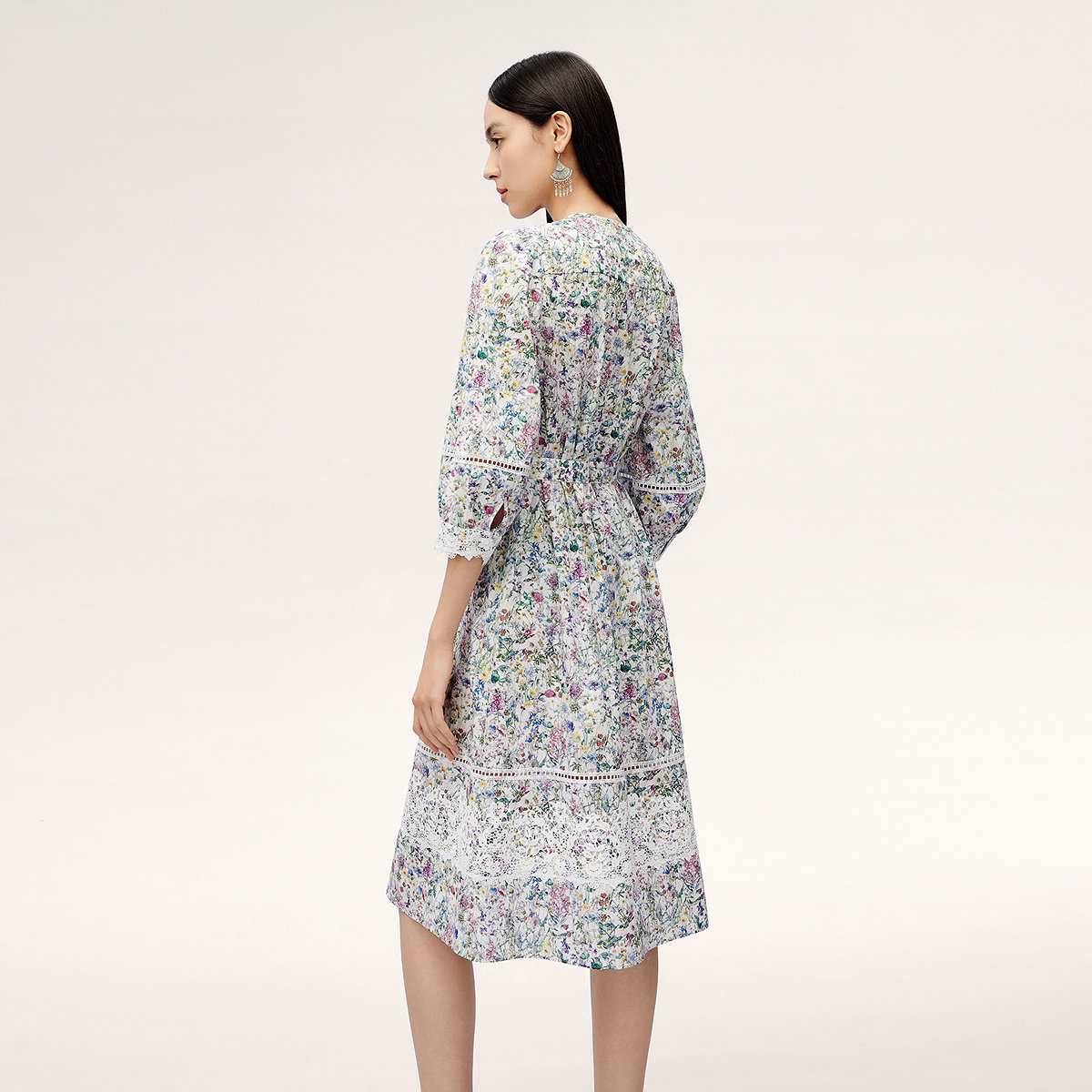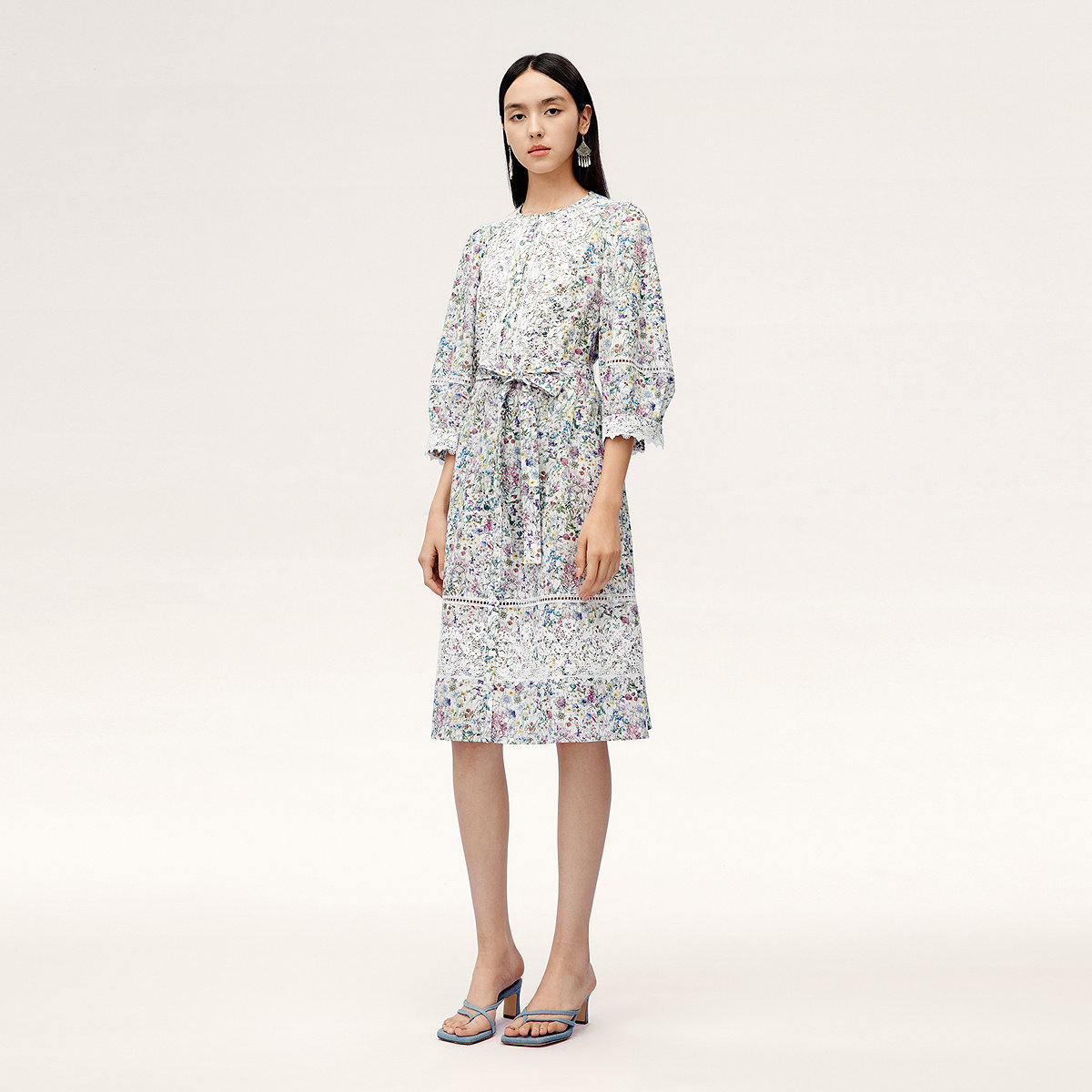 VGRASS维格娜丝夏季 进口蕾丝中长裙浮雕印花收腰系带连衣裙 新款