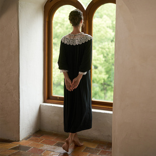 性感系带高级感浴袍睡裙公主睡衣 珊瑚绒长款 法式 蕾丝睡袍女秋冬季