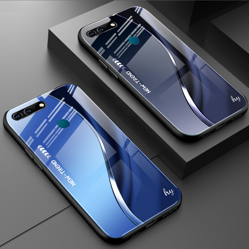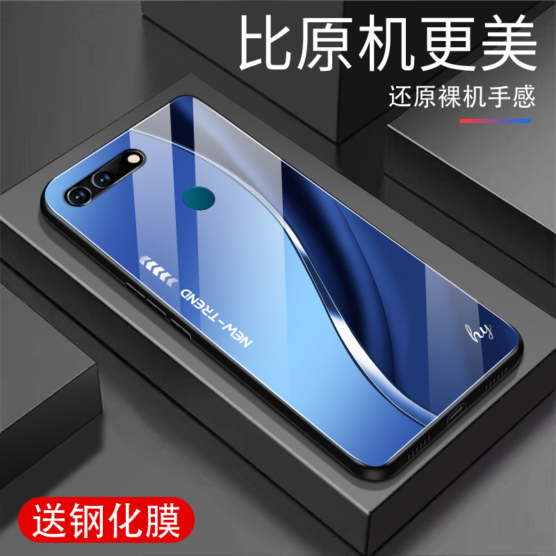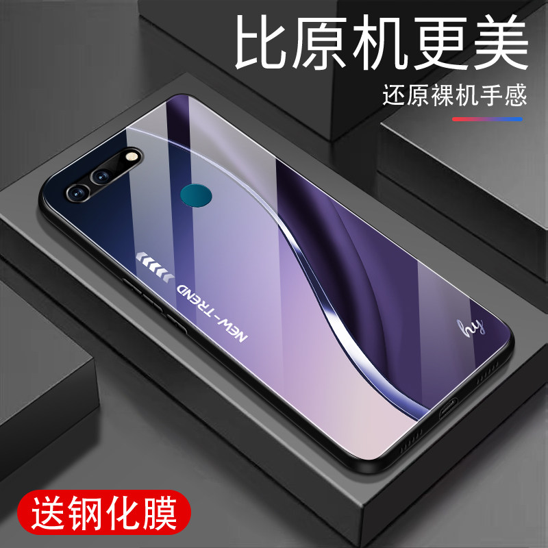 流线形外壳 高档超薄经典 适用荣耀V20手机壳新款 钢化玻璃男女硅胶全包防摔保护套高级感创意商务个性