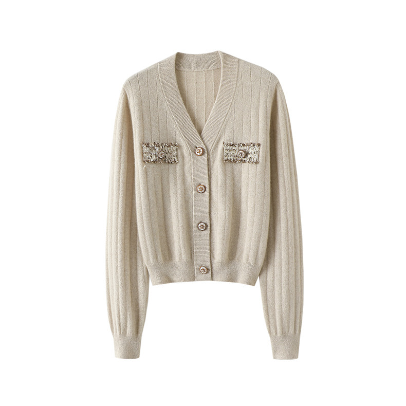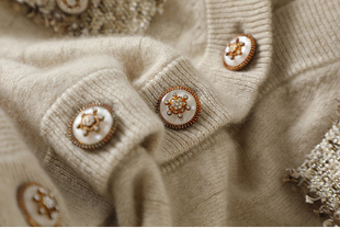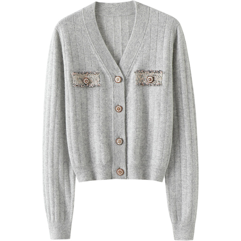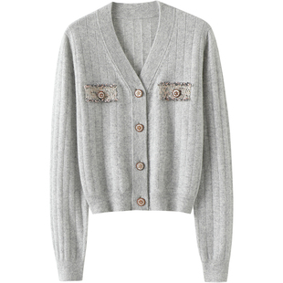 女纯羊绒毛衣针织开衫 饰V领山羊绒开衫 小外套秋冬 立体彩线装 爆美